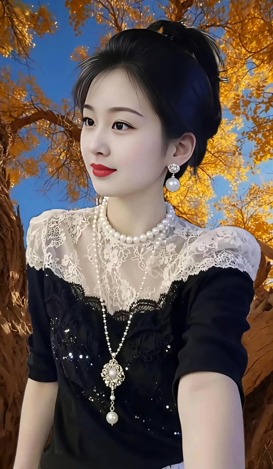 秋日森林中的甜美少女,自然与优雅的完美结合。