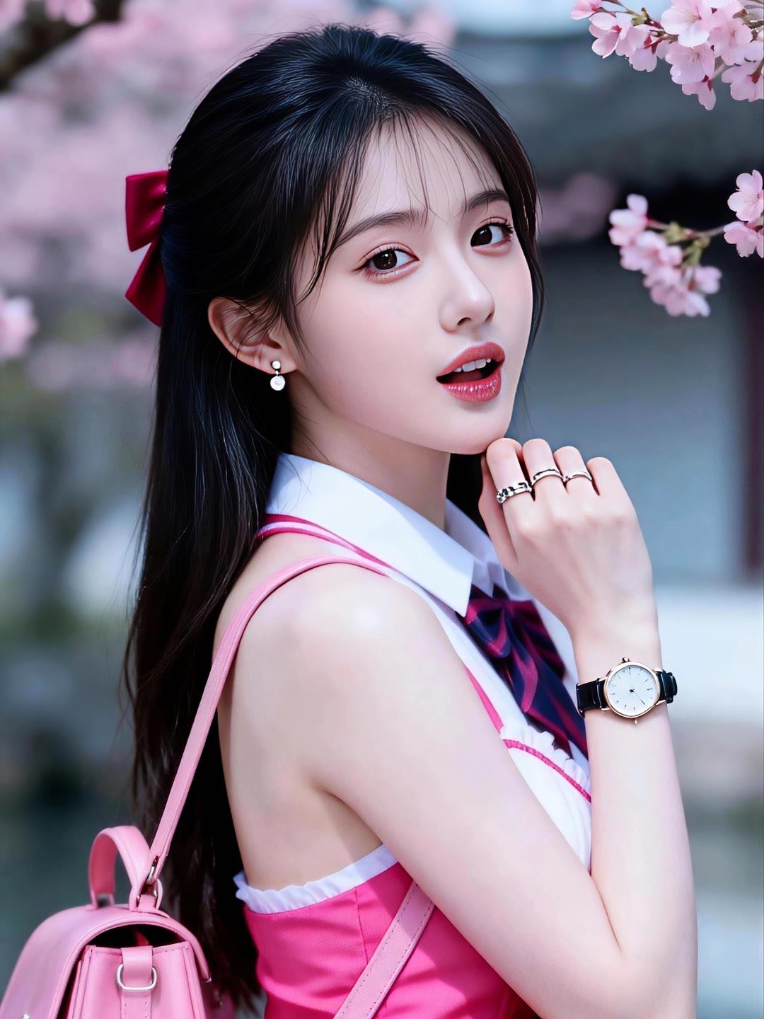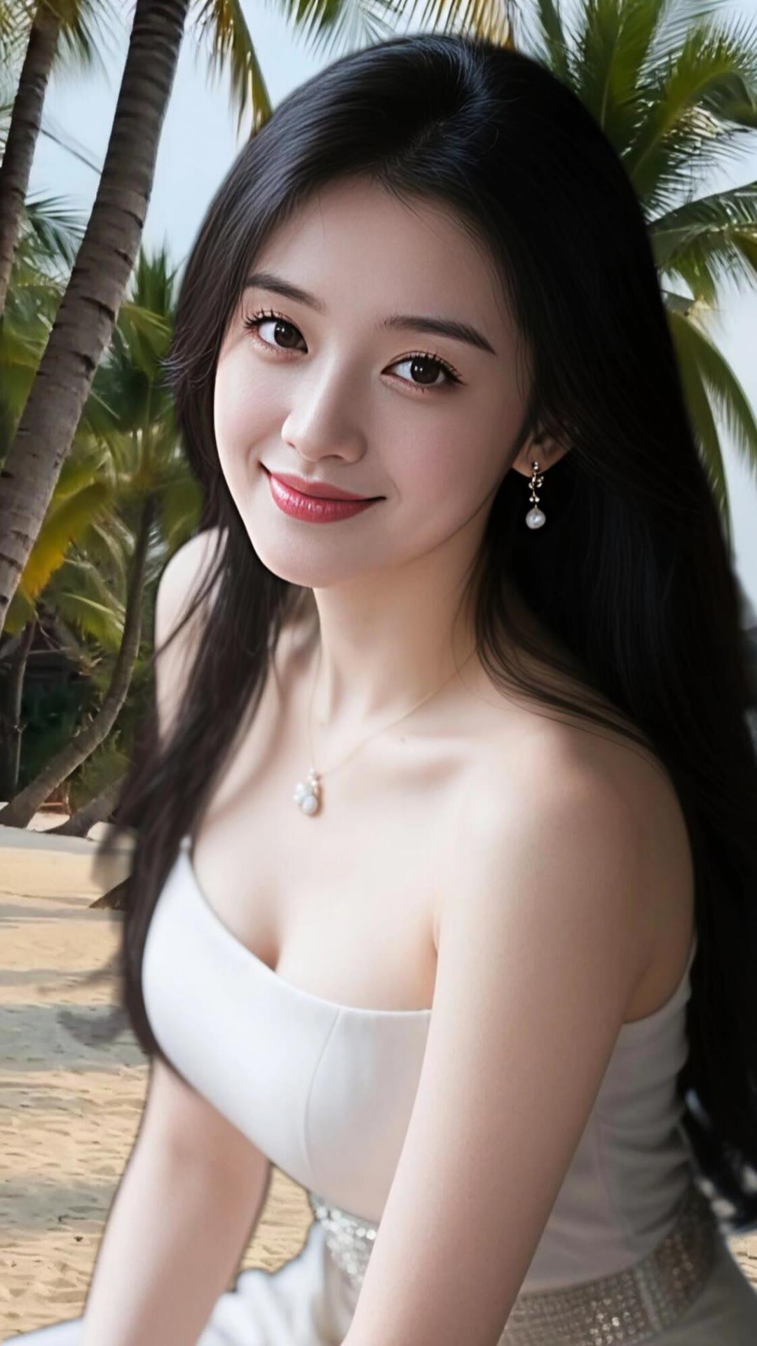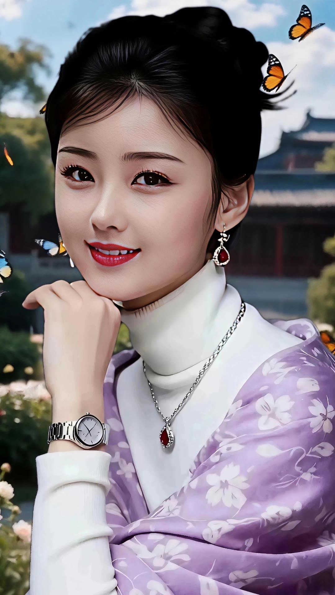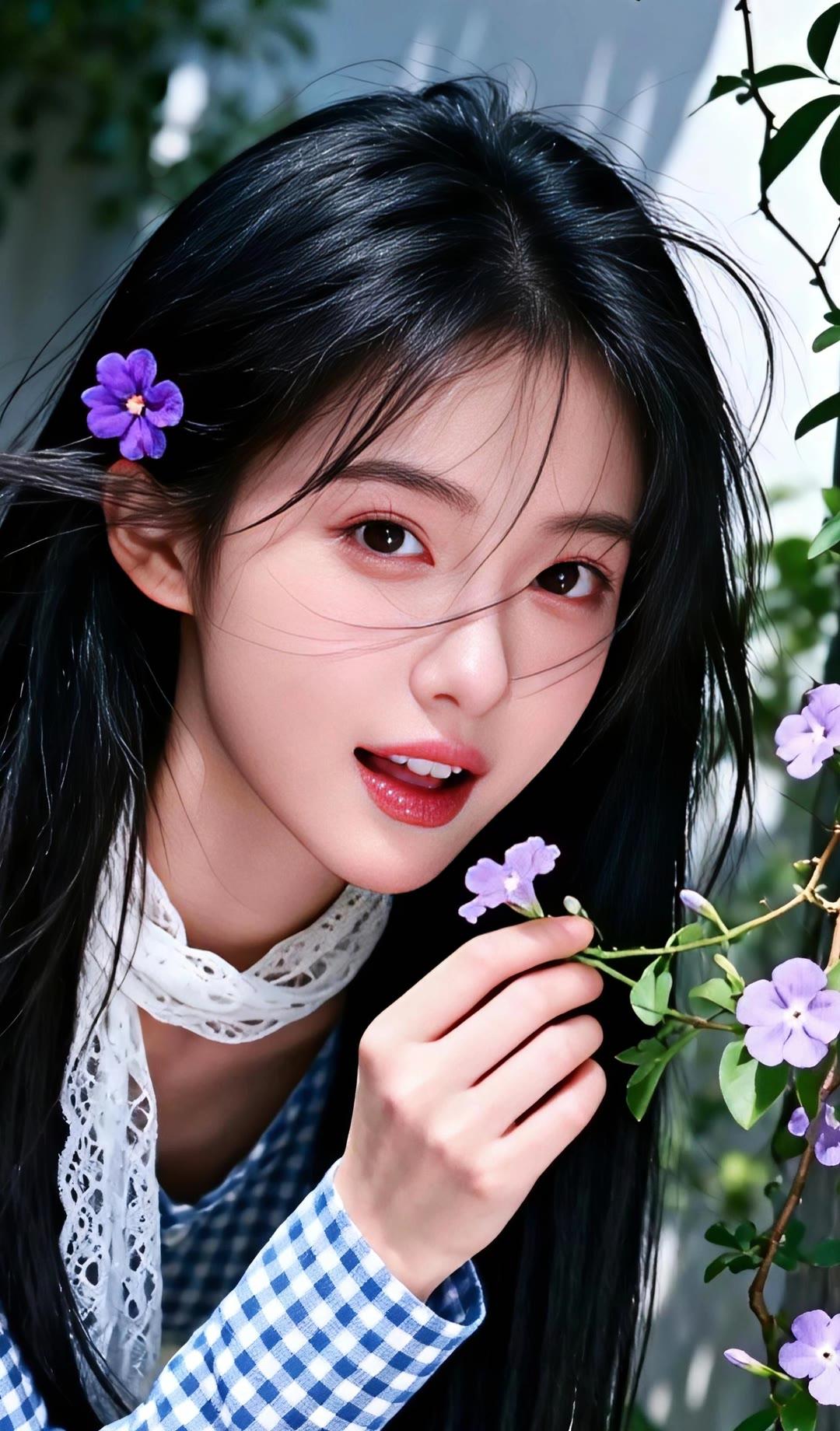 绝美清纯佳人,肤白如玉眸清似水,眉眼温婉长发飘逸,身姿曼妙曲线动人。简约雅致穿搭