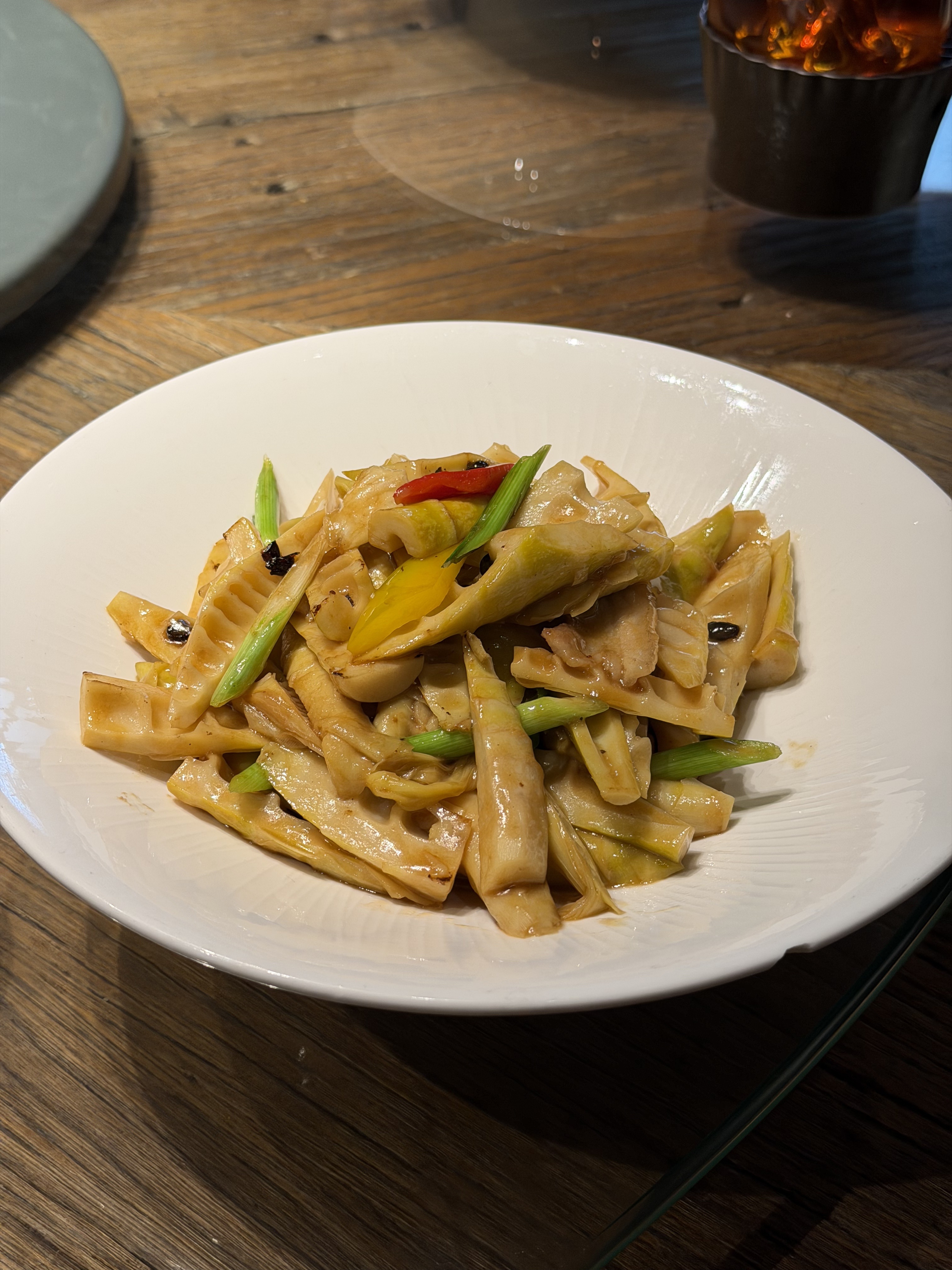 我姐点的都是招牌菜:烧鹅、干蒸鸡、雪山茄等。摆盘比较精致,但味道一般。我唯一喜欢的是笋子,酸脆爽口、比较开胃。