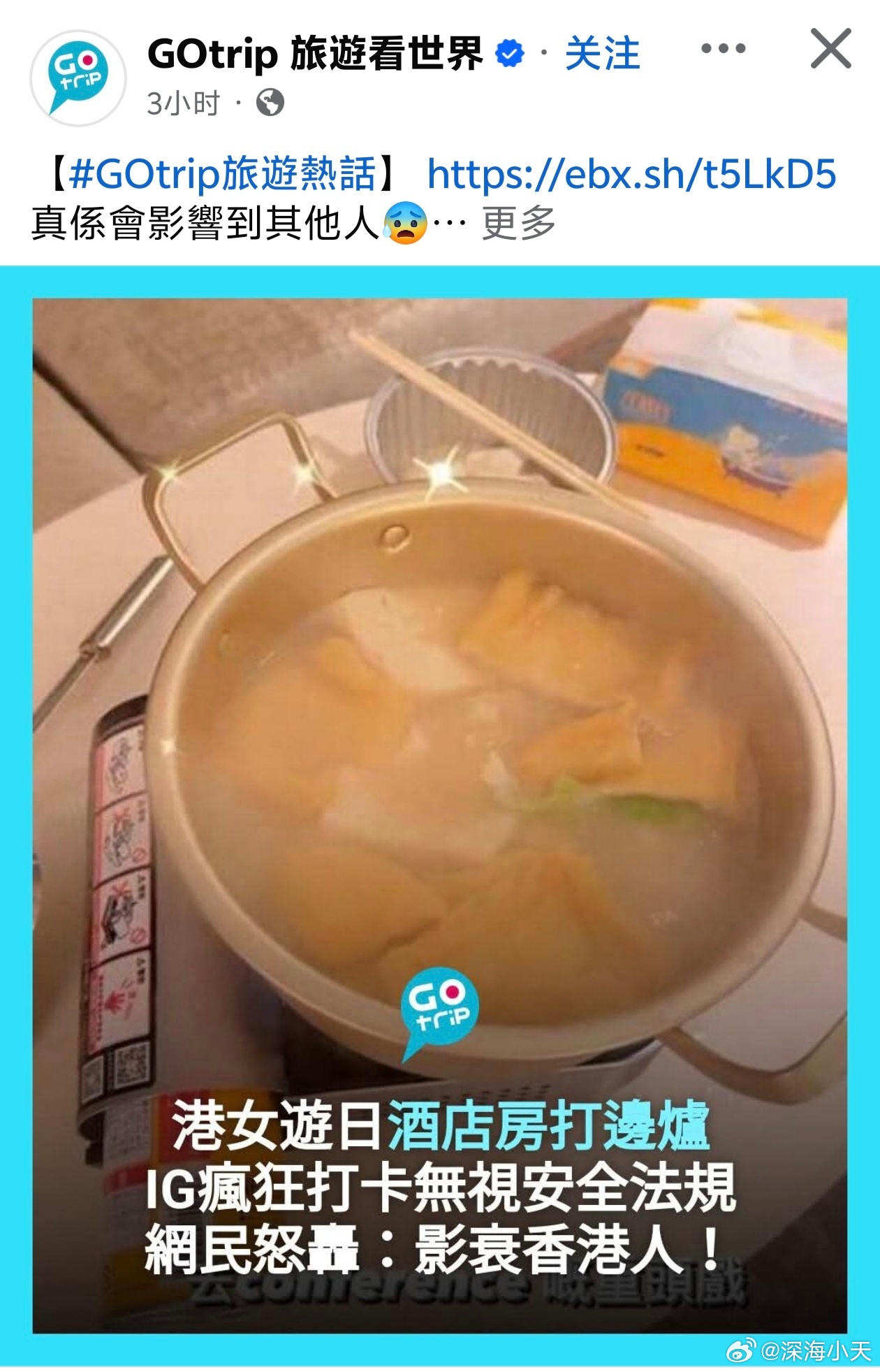 港女日本酒店房内吃火锅,港网民:败坏香港人名声港媒《GOtrip》报道,脸书「