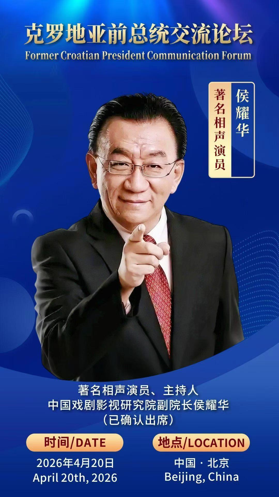 【克罗地亚总统】 2026年4月20号欢迎总统欢迎晚宴·做总统的朋友,品味一步到位! 约西波维奇总统还有一个身份是音乐家,所以这次我特别邀约了艺术前辈【相声演员侯耀华】老师同往。 以艺会友,以文传声。 艺术无界,山河同春。 四月京华,共赴一场中西文化之约。💫✨️