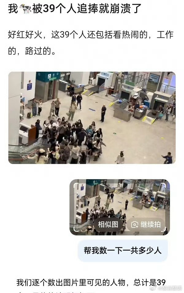 张凌赫线下被围堵崩溃,结果网友把人数给数出来了,说是39个人这数量还没我家楼下吃
