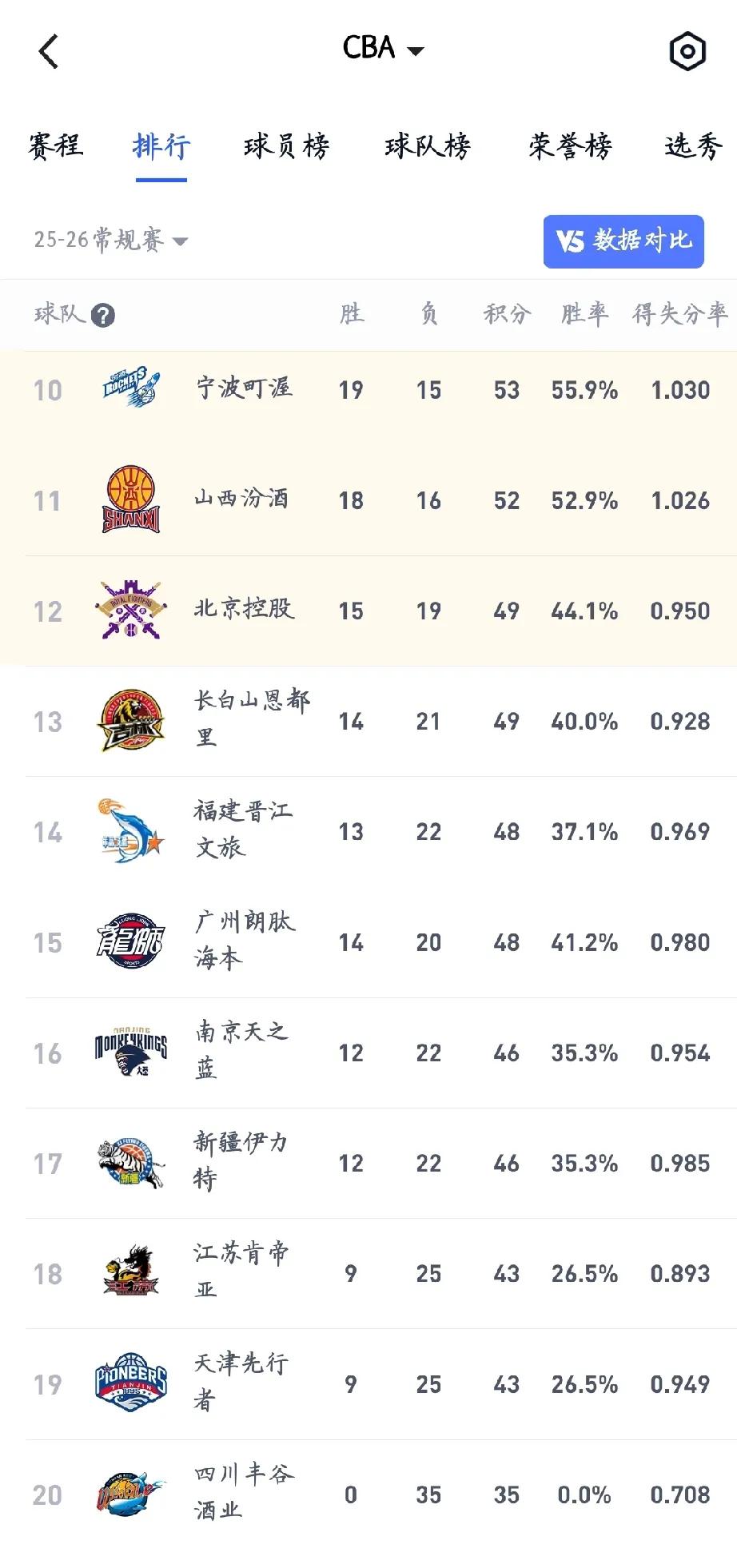 四川现在真的直接摆烂了,打了35场一场没有胜利,真的太恐怖了,这直接说摆烂到底了。北京对投入很大,如今在第五的位置。