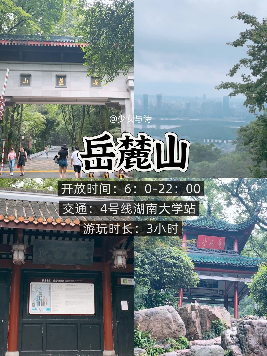 2️⃣岳麓山:免费开放,可索道30元上山俯瞰长沙城景,沿步道下山途经古麓山寺、爱晚亭,深秋枫叶似火,是赏秋拍照的绝佳之地。