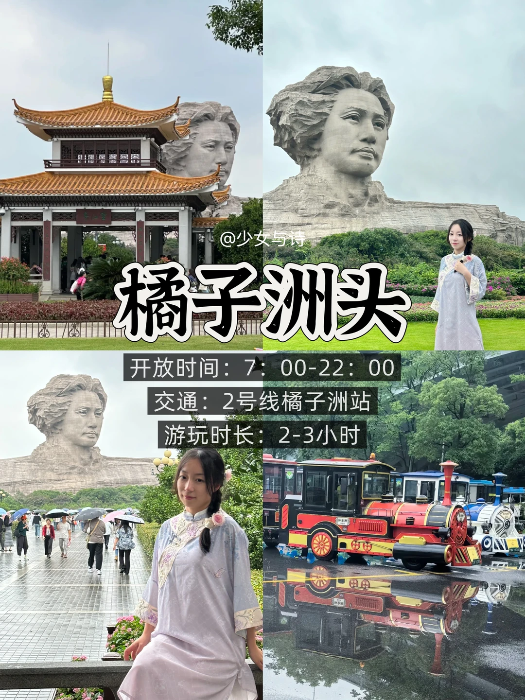 1️⃣橘子洲头:长沙标志性景点,免费入园,可乘小火车40元直达青年毛泽东雕像,感受伟人风采,沿途湘江风景如画,周末还能观赏烟花秀。