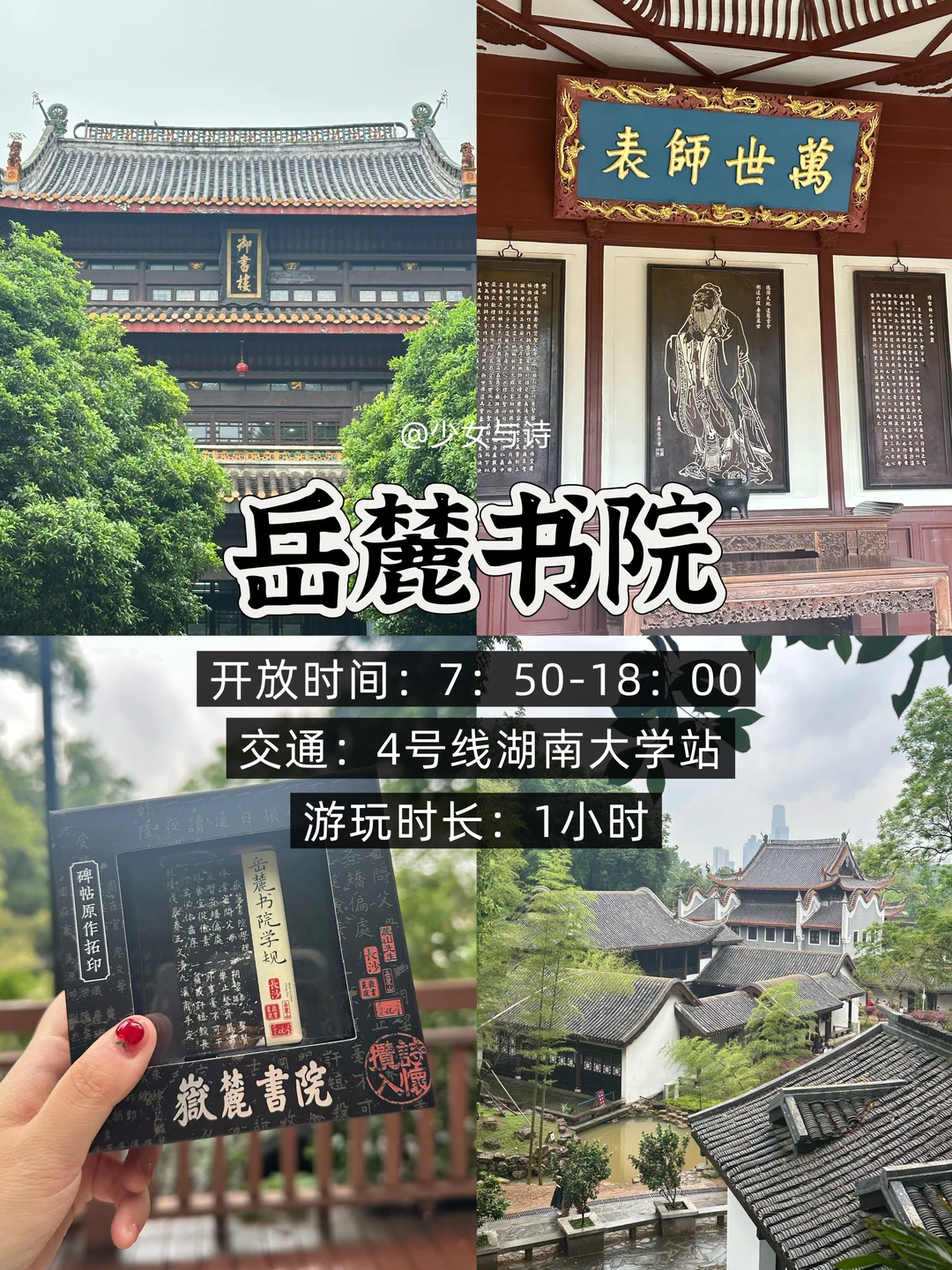 6️⃣岳麓书院:中国四大书院之一,门票40元,古雅建筑与深厚文脉相得益彰,院内园林景观优美,是感受传统文化的好去处。