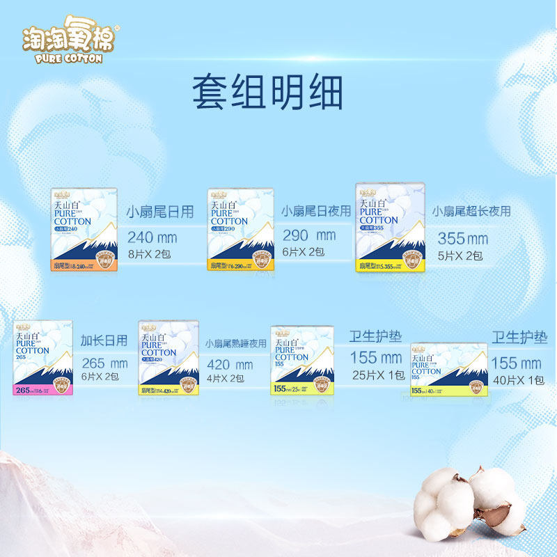 任选3组 淘淘氧棉天山白消毒级卫生巾