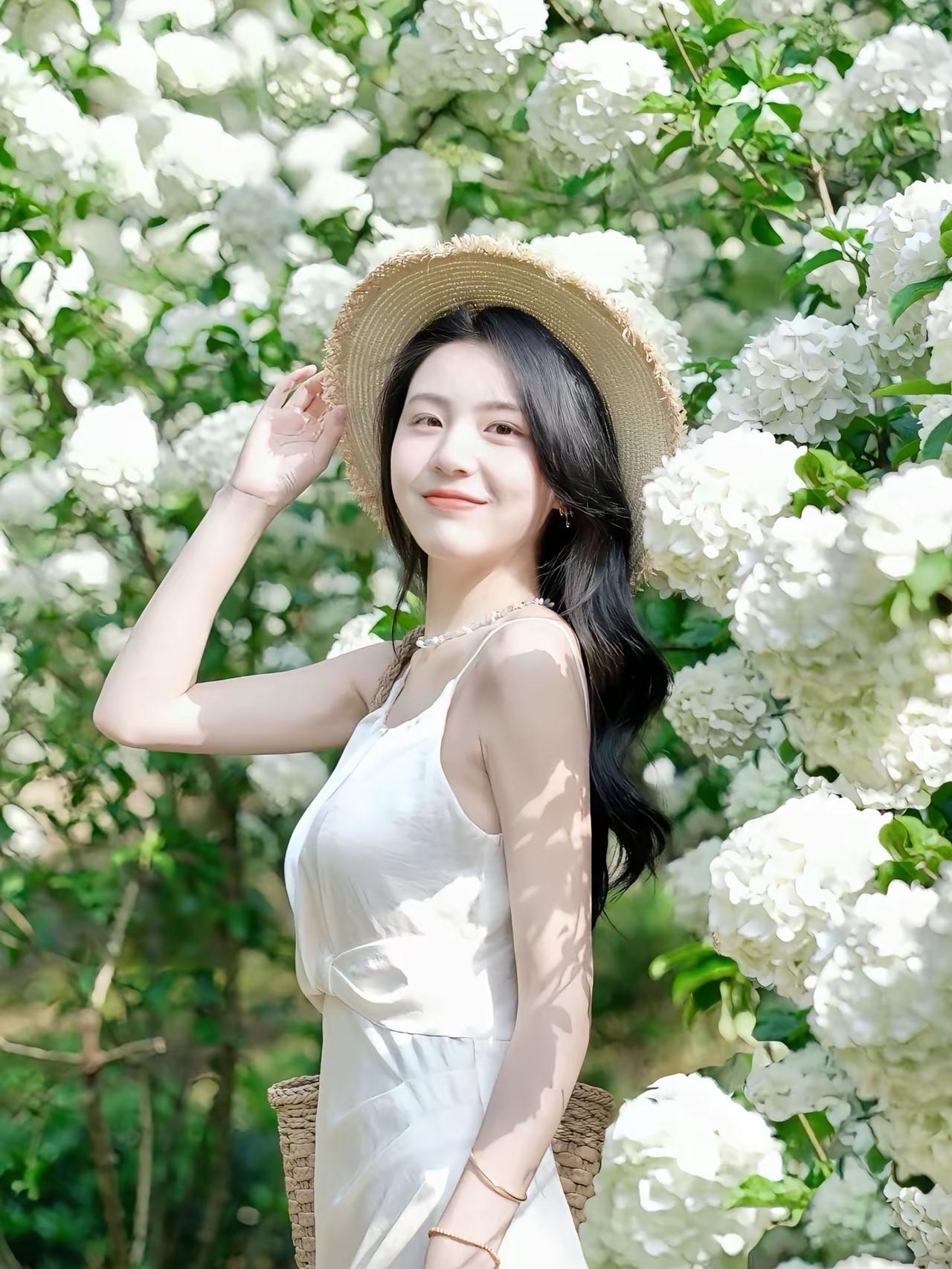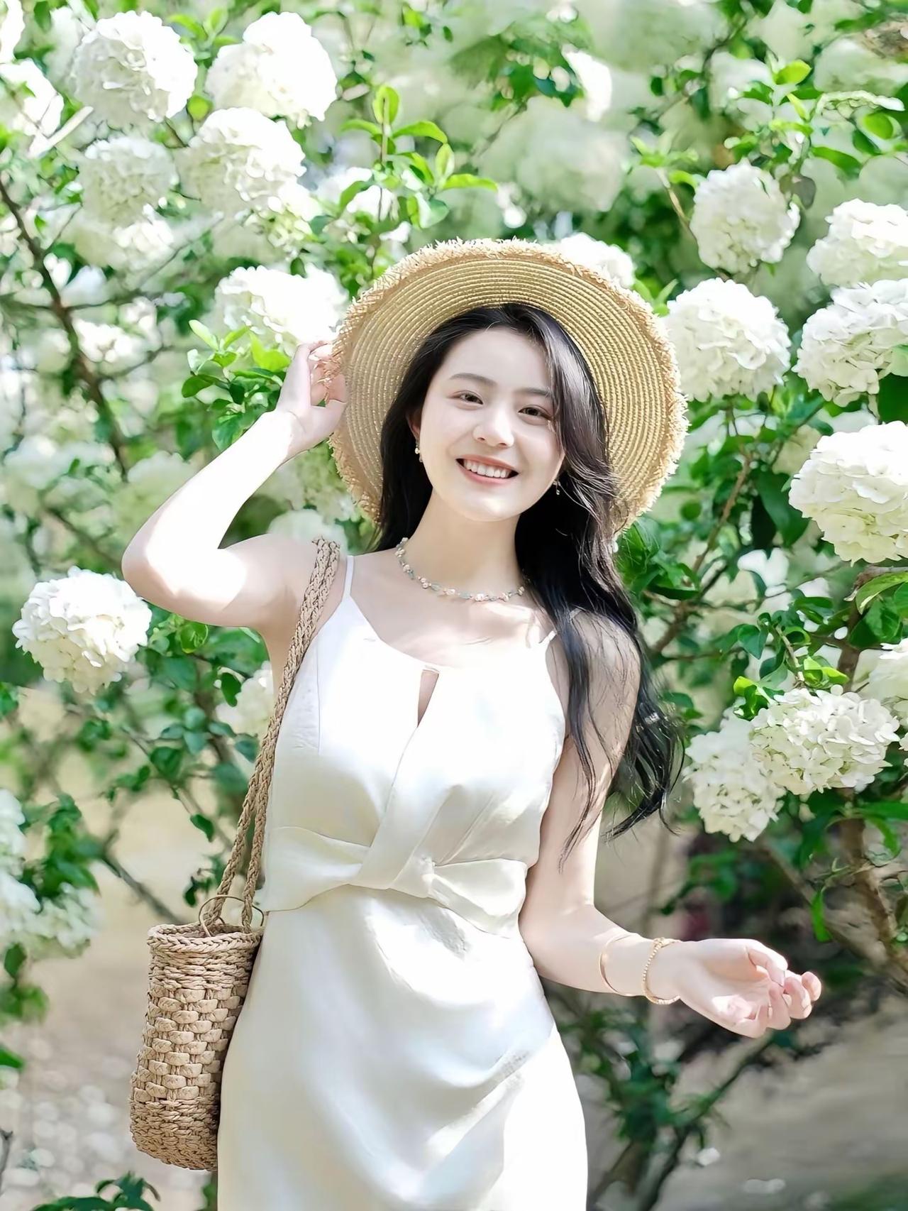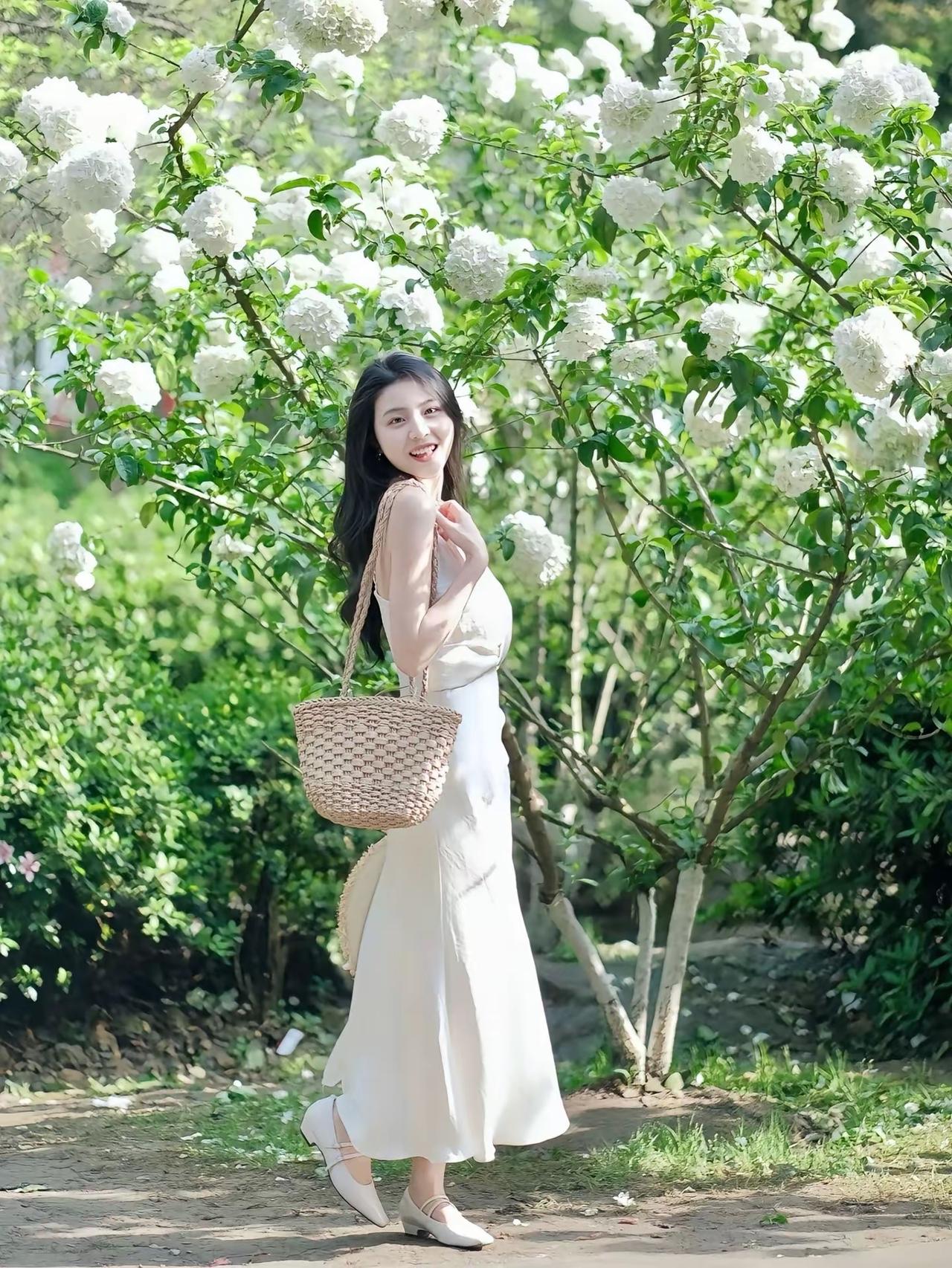🌼 春日绣球花法式少女造型 这套造型完美适配春日赏花、野餐、轻旅行等场景,以米白色缎面吊带裙打造清新法式少女风,与绣球花背景适配度拉满,温柔又灵动。 ✨ 核心单品拆解 连衣裙:米白色缎面吊带长裙 • 设计亮点:垂坠感缎面材质自带柔光,腰部扭结设计修饰腰腹线条,V领+细肩带勾勒肩颈线条,温柔中带点小性感;米白色自带春日氛围感,与绣球花背景完美融合。 • 版型优势:高腰扭结+A字裙摆,优化身材比例,对腰腹、胯部线条包容性强,缎面材质在阳光下自带光泽感,拍照超上镜。 配饰与搭配细节 • 草编宽檐帽:边缘毛躁设计自带慵懒感,既能遮阳,又能修饰脸型,是春日造型的氛围感神器。 • 草编托特包:与草帽呼应,编织材质自带田园气息,容量大,适合赏花时携带随身物品。 • 贝壳/碎玉项链+金色细手链:简约精致的配饰,点缀颈部与手腕,提升造型细节感,不抢穿搭风头,又能增加精致度。 • 米白色玛丽珍鞋:低跟设计舒适百搭,与米白色连衣裙呼应,弱化造型的甜腻感,增添温柔气质。 🌟 风格亮点 1. 法式少女感拉满:缎面吊带裙+草编帽,是法式少女风的经典组合,温柔又灵动,自带春日滤镜。 2. 场景适配度100%:米白色缎面裙与绣球花背景完美适配,阳光下的缎面光泽感与白色花朵呼应,拍照自带柔光效果。 3. 不挑身材,温柔显瘦:扭结设计+高腰A字裙摆,修饰腰腹线条,对各种身材都很友好,缎面材质自带垂坠感,藏肉效果一流。 4. 实用性与颜值兼顾:整套搭配既能适配赏花拍照,也能应对春日野餐、轻旅行等场景,草编帽和托特包还兼具实用性。 💡 搭配延伸方案 • 更休闲的日常版:搭配白色帆布鞋+草编包,弱化造型的精致感,打造松弛的韩系少女风。 • 更浪漫的约会版:搭配细带凉鞋+珍珠配饰,强化法式浪漫感,适合春日约会。 • 更防晒的实用版:外搭一件白色防晒开衫,既能应对春日早晚温差,又能增加造型层次感。 📸 赏花拍照小技巧 1. 利用前景虚化:用绣球花作为前景,营造朦胧氛围感,让照片更有层次。 2. 光影互动:利用树叶的光影,在脸上形成光斑,增加照片的灵动感。 3. 道具互动:拿草帽、草编包作为道具,和花朵互动,拍出自然不僵硬的照片。连衣裙 少女 春天