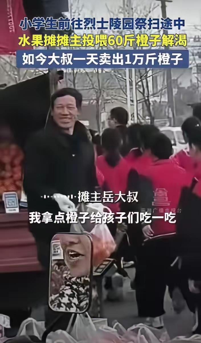 想不发财都难!江苏,一位大叔在路边摆摊卖水果,谁知,就在准备收摊时,刚好遇到小学生前往烈士陵园扫墓,本以为他会向学生介绍自己的水果,结果,他竟拿出自己全部的橙子免费给学生们吃,足足送了60多斤,而这一举动,也引起了无数网友共鸣,如今一天能卖10000斤橙子。网友:善良的人,生意都不会差! 很多人看到这个新闻,第一反应是这大叔运气真好,免费送点橙子就火了。可你要是真这么想,就把这事儿看浅了。60多斤橙子,按市场价算撑死了也就几百块钱。可这几百块钱换来的,是全网几千万的播放量,是每天上万斤的销量。这笔账,那些花几十万投广告的商家做梦都不敢这么算。 可问题来了——为什么偏偏是他?摆摊卖水果的人多了去了,为什么就他一个被全网记住? 你得看看当时那个场景。一群小学生,穿着校服,排着队去烈士陵园扫墓。孩子们脸上还带着懵懂,可能不太懂“烈士”两个字到底有多重。大叔没趁机推销,没喊“走过路过不要错过”,而是默默把摊上所有的橙子装进袋子里,一个一个塞到孩子手里。有孩子说谢谢,他摆摆手,说“不用谢,你们是去看英雄的,应该的”。就这么一句话,把在场的人都说愣了。 一个卖水果的,文化程度可能不高,可他心里有一杆秤——英雄用命换来的好日子,不能让孩子们空着手去祭拜。哪怕自己少挣几百块钱,这口气得撑住。这种朴素到骨子里的价值观,恰恰是现在最稀缺的东西。 有人说,这是大叔的营销手段。可真要是营销,他大可以只送一部分,留一部分接着卖;或者提前喊来记者,摆拍几张照片。可他什么都没准备,只是碰上了,就掏空了整个摊子。一个每天起早贪黑、挣的都是辛苦钱的小贩,能在那一刻毫不犹豫地把全部家当递出去,这不是算计,是本能。 更深一层想,这件事戳中的是所有人心里那根弦——我们嘴上说着世态炎凉,可骨子里还是相信善良会发光。大叔的橙子摊后来排起了长队,有人专门开车几十公里来买,不是他家的橙子比别人甜,是人们想为这份善良投上一票。你敬我一尺,我敬你一丈,这个道理几千年来没变过。 网上有个高赞评论说得特别好:“他送出去的是橙子,收回来的却是人心。”60斤橙子,换来的不只是每天一万斤的销量,更是无数人对“好人好报”这四个字的重新相信。在这个凡事都讲投入产出比的时代,一个摆摊的大叔用最笨的办法,给所有人上了一课——善良,才是最高级的生意经。 各位读者你们怎么看?欢迎在评论区讨论。