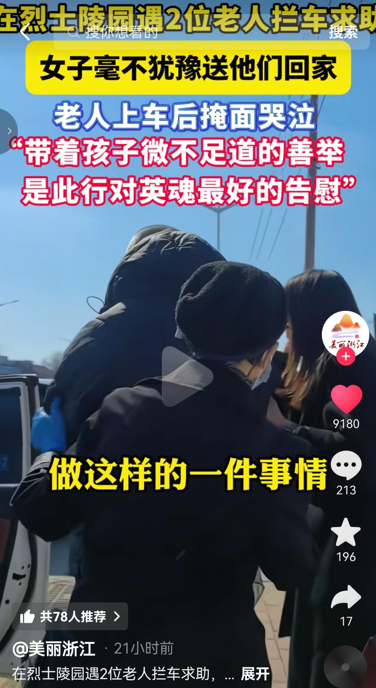 破防了!长春革命烈士陵园门口,两位白发老人拦车求助,拦了几十辆全是呼啸而过,直到钟女士带着儿子停下车,老人一上车就忍不住掩面痛哭! 4月4日清明节,钟女士开车路过长春革命烈士陵园,远远就看见两位老人坐在路边,颤巍巍地朝过往车辆招手。 她没有丝毫犹豫,直接靠边停车,还让坐在副驾的儿子下车,把两位老人搀扶上车。 上车之后,大爷大妈直接绷不住了,捂着脸无助地哭了起来。钟女士后来回忆,大爷哽咽着说:“姑娘,我们拦了好多车,都没给我们停……” 原来两位老人是来陵园祭扫的,出来之后打不到车,也拦不到顺风车,在路边坐了很久,腿都冻僵了,看着一辆辆车从身边开走,心里又急又委屈。 钟女士二话不说,直接把两位老人安全送回了家。 事后她坦言,自己特别踏实:“能在这么庄严肃穆的烈士陵园里,带着孩子做这么一件小事,我觉得这就是对那些英魂最好的告慰。 我们脚下踩着的,是先烈用命守护的人间,怎么能让这份举手之劳的善意缺席?” 网友看到后评论说:我真的看哭了!那些不停的车,你们怎么这么冷漠呢?那是烈士陵园门口啊!那是给我们拼过命的地方!你们开着车呼啸而过的时候,有没有想过,今天的安稳日子是谁给的? 也有的网友说:我就是长春的!每次清明去陵园,都能看到很多老人打车难!真的希望大家多停一停,多帮一把!为钟女士和她儿子点赞! 还有的网友说:我要是在现场,我也会停!带着孩子,就是要让他知道,什么是善良,什么是感恩!那些不停的车,你们给孩子做了什么榜样? 我真的越看越气,越看越酸! 气的是,在烈士陵园门口,在清明节这个特殊的日子,两个白发苍苍的老人,拦了那么多车,居然没有一辆愿意停下来!你们开着车,从先烈用生命换来的土地上飞驰而过,对着求助的老人视而不见,你们怎么能这样呢? 酸的是,还好有钟女士,还好有这个带着孩子的妈妈!她用一个停车的动作,给孩子上了人生中最生动的一课:善良从来都不是选择题,而是必答题! 有人说,现在的人都怕被讹,都怕多管闲事。我就想问一句:在烈士陵园门口,两个来祭扫的老人,能讹你什么?讹你送他们回家?讹你帮个举手之劳? 别拿“怕被讹”当借口,本质就是冷漠,就是自私!你们开着车,享受着先烈换来的太平日子,却连最基本的善意都不愿意给! 而钟女士,她不仅停了车,还带着孩子一起扶老人上车,送老人回家。她做的这件事,比任何说教都有力量!她让孩子知道,什么是感恩,什么是担当,什么是中国人骨子里的善良! 这件事,从来都不是一件简单的“好人好事”。 它是一面镜子,照出了人性的冷漠,也照出了人性的光辉。 在烈士陵园门口,我们每一个人,都欠先烈一份敬畏,欠老人一份善意。钟女士用一个小小的举动,给我们所有人上了一课:善良,从来都不是奢侈品,而是我们每个人都该有的底色。 那些呼啸而过的车,你们错过了一次救赎自己的机会;而钟女士,用善意,给了英魂最好的告慰,也给了孩子最好的成长。 你脚下踩着的,是先烈用命守护的人间;你伸手帮的,是和你一样,念着先烈恩情的同胞。别让冷漠,凉了英魂,寒了人心!