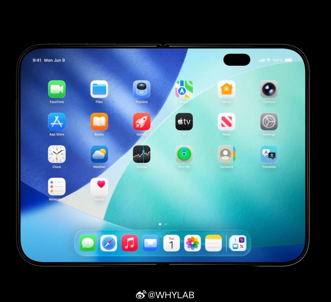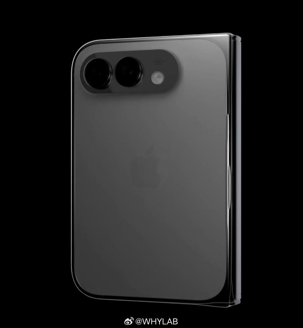 iPhoneFold再曝渲染图比例和之前曝光的基本一致,折叠厚度约 9.6mm,展开后 4.8mm,重量约 260g。