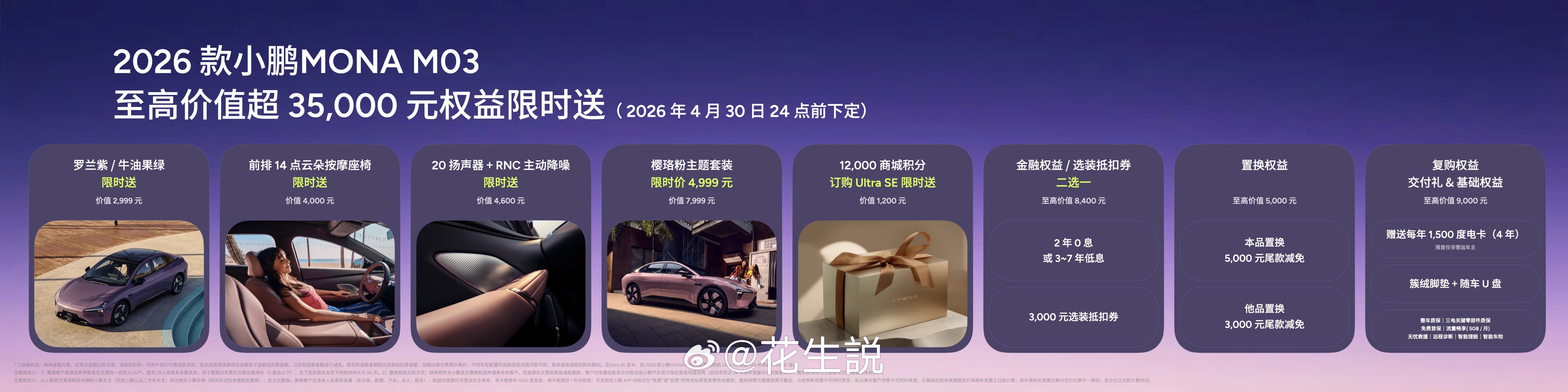 2026款小鹏MONA 03终于上市了,面向年轻人的车颜值必须到位,这次MONA 03多了罗兰紫、牛油果绿两种配色,还有樱珞粉套装版,精致感确实在线。当然这辆车内在也不一般,前排14点云点按摩,双层静音前门玻璃,RNC主动降噪,还有超1000W HiFi音响,体验这块也拿捏到位了小鹏针对辅助驾驶也做了两个版本,Max版单颗图灵AI芯片,搭载第一代小鹏VLA,今年第三季度可升级第二代VLA蒸馏版。Ultra SE有两颗图灵芯片,标配第二代VLA。另外新款MONA出厂就是天玑AIOS 6.0系统,采用全新「驭光」UI设计,质感挺不错2026款MONA 03售价11.98万起,还有35000元限时权益,大家觉得怎么样?