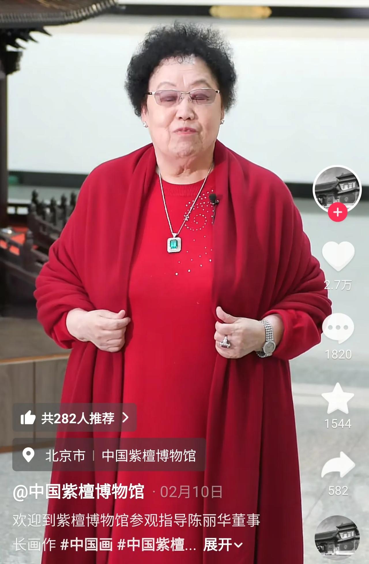这是陈丽华最后公开露面的画面,在今年的2月10日,离过年还有7天的时间。 自从这次露面后,陈丽华就一直没有现身,也没有在最心爱的紫檀博物馆账号科普紫檀知识。 谁也没想到,今年2月10日那匆匆一面,会是陈丽华留给世人的最后身影。 那天离过年还有7天,年味已经越来越浓,大街小巷都透着热闹劲儿,画面里的她,依旧带着几分从容,只是眉眼间,似乎比往常多了些许疲惫。 熟悉她的人都知道,陈丽华这辈子最在意两件事,一是家人,二是紫檀,作为中国紫檀博物馆馆长,她几乎把后半辈子都献给了紫檀文化的传承。 以前的她,隔三差五就会出现在博物馆账号,亲自科普紫檀知识、展示藏品,不管是紫檀的雕刻工艺,还是老家具的历史渊源,她都讲得通俗易懂、津津有味。 网友们也习惯了她的更新,总说看她讲紫檀,既能长知识,又能感受到匠心,可2月10日那次公开露面后,陈丽华就像按下了暂停键,彻底没了动静。 她没有再公开现身,就连最心爱的紫檀博物馆账号,也停止了更新,一开始,网友们只是觉得奇怪,以为她只是忙着过年,暂时没时间更新。 可一天天过去,从过年到元宵,再到开春,始终没有陈丽华的任何消息,博物馆账号依旧沉寂,没有新的科普视频,也没有任何关于她的动态。 网友们的疑惑越来越深,大家纷纷在评论区留言,询问她的近况,没人能想到,这份漫长的等待,最终等来的,会是一个令人心碎的噩耗。 4月7日,北京侨商会和富华国际集团先后发布讣告,宣布陈丽华逝世的消息,讣告明确说明,她因病医治无效,于2026年4月5日在北京逝世,享年85岁。 大家翻出2月10日她最后露面的画面,再对比讣告,满心都是惋惜,有人回忆,那天她穿着朴素,言语温和,丝毫看不出身体有任何异常,谁能料到,短短不到两个月的时间,就天人永隔,从此世间再无陈丽华。 陈丽华的一生足够传奇,她白手起家曾登顶中国女首富,创下商业传奇,但她最在意的从来不是财富,而是紫檀文化的传承,是老祖宗留下的瑰宝。 她耗资2亿建造中国紫檀博物馆,收藏、打造上万件紫檀精品,只为留住文化根脉,她还耗时十年,用紫檀按比例复制老北京城门,只为重现古建辉煌。 她曾说把紫檀留给后人比留钱更有意义,这份匠心令人动容,如今她带着对紫檀的热爱离去,留下的,是一座装满文化的博物馆,一份不朽的匠心。 2月10日的那一面,成了永恒的定格,有人说真正的离去从不是消失,而是被人铭记,陈丽华做到了,她的匠心会一直被怀念。