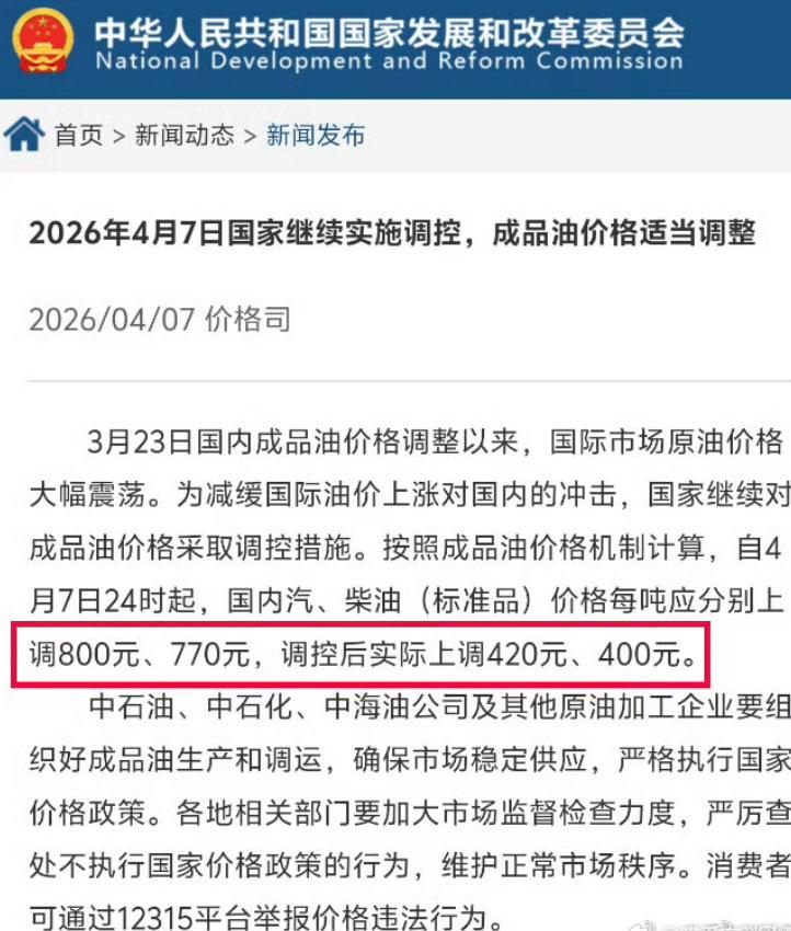 感谢咱妈! 国家再次出手,油价不疯涨了! 官方实锤,今晚24时起,全国油价调整! 先给大家算笔明白账,不玩虚的! 本轮国际油价暴涨,按原机制算。 汽油要涨800元/吨,柴油要涨770元/吨。 要是不调控,95号汽油差点破10元/升! 加满一箱50升油,得多花30多块! 还好国家及时出手,直接“砍半”涨幅! 实际只涨420元/吨汽油,400元/吨柴油。 相当于每升少涨3毛多,加满能省16块左右! 别觉得省得少,这都是真金白银的实惠! 对于车主、货车司机、农户来说。 这不是小钱,是实实在在的减负! 有人吐槽,怎么还在涨? 我劝你别不知足! 国际油价疯涨,不是国家能左右的。 国家调控,不是不让涨,是不让你被“割韭菜”! 看看国外,油价早就破10元,甚至11元。 我们能稳住8块多,全靠国家托底! 要知道,油价牵动的不只是车主。 物流、农业、制造业,全靠燃油撑着。 油价太高,物价必涨,最后还是老百姓买单。 国家出手,看似控油价,实则护民生! 没有国家兜底,我们的出行成本、生活成本只会更高。 别再抱怨涨价,要明白: 国家的每一次调控,都是在为普通人扛压力、托底线。 所谓岁月静好,不过是有人替我们遮风挡雨。