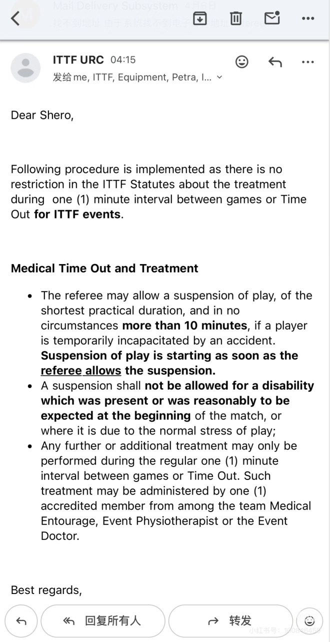乒乓球ITTF回应局间按摩合规 局间可以按摩这条规则应该和另一条规则一起看就是痉挛(抽筋)是不可以叫医疗暂停的!!!!!!!!!!