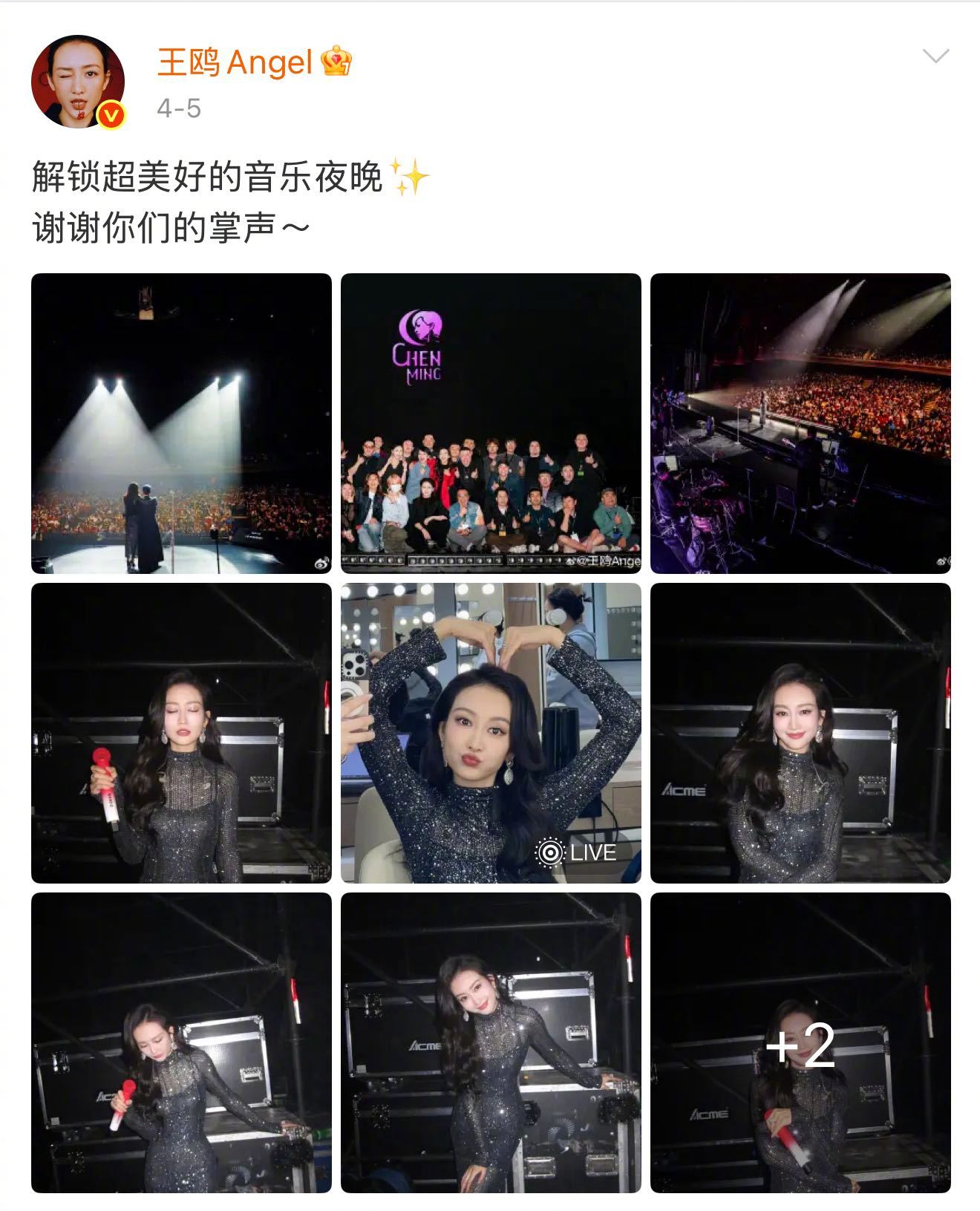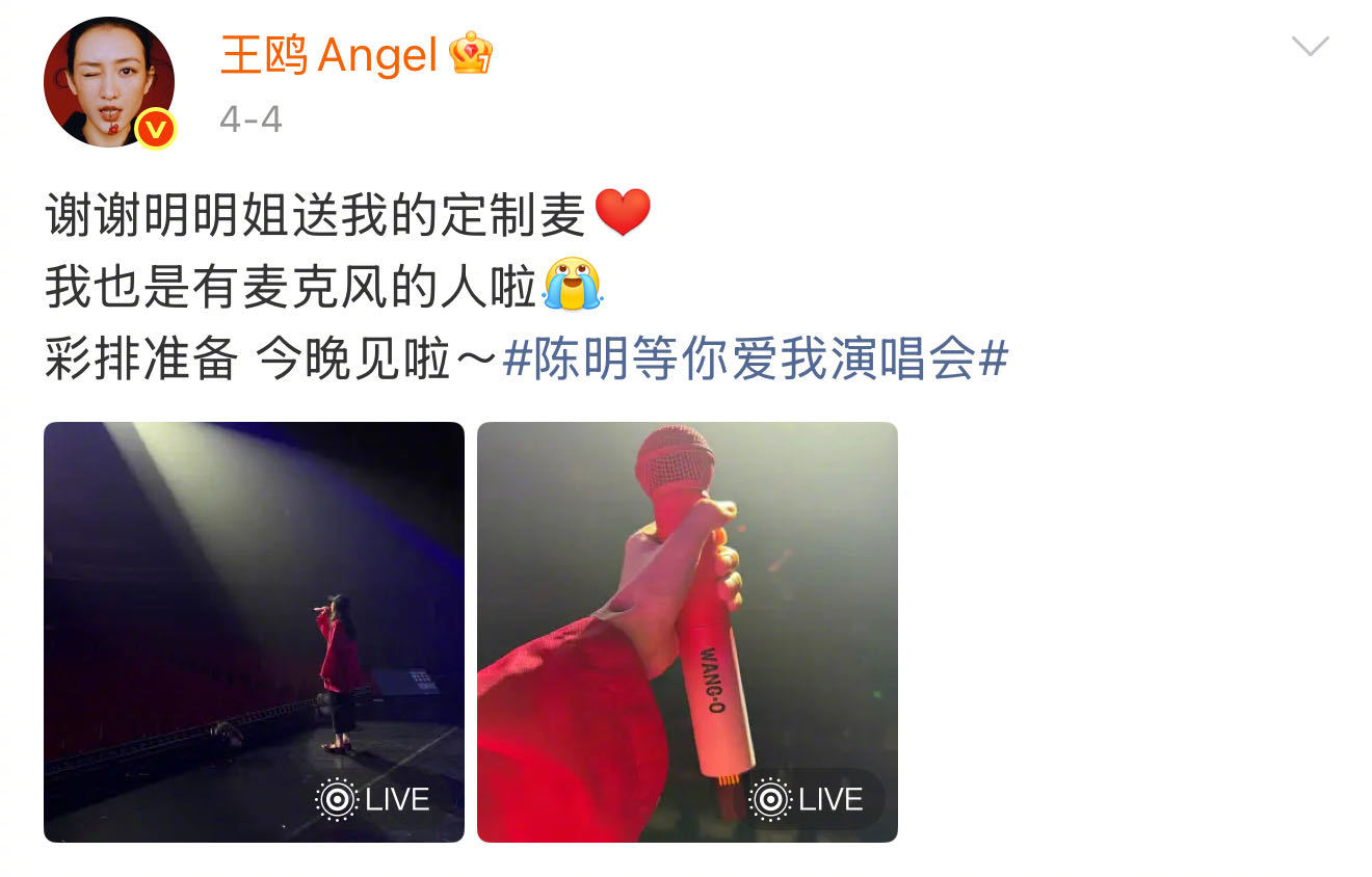 王鸥紧张也靠喝水缓解又听到王鸥唱成全了 王鸥作为嘉宾亮相陈明演唱会,看到丽发皇宫的背景,我真的幻视鸥茉莉了~满钻连衣裙真的好闪呀!完全好莱坞名伶既视感~