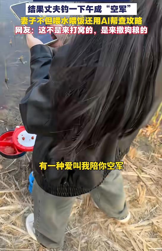 “太羡慕了!” 4月6日,北京,一男子去钓鱼,发现对面有对小夫妻,丈夫在钓鱼,妻子在一旁喂水喂饭,男子见状,便上去询问两人钓了多少,两人说空军,男子听后就想送两条鱼给这对夫妻,但最后却被秀了一脸恩爱!网友:有这待遇谁在乎空军! 暖阳褪去了暮春的微凉,这样适宜的天气,成了钓鱼人的绝佳时机。 一位男子趁着难得的空闲,卸下连日工作的疲惫,拎着沉甸甸的渔具,辗转来到河边。 这片他偶尔来的水域,水质清澈,岸边草木葱茏,向来是钓鱼爱好者的聚集地。 他本想在这里寻一份清净,顺便试试手气,能有几分收获最好,即便没有,也能好好放空自己。 找了一处临水的树荫下,男子放下渔具,熟练地组装鱼竿、调试浮漂,再将和好的饵料搓成小球挂在鱼钩上。 静坐了许久之后,他无意间抬眼望向河对岸,两抹身影映入眼帘。 那里坐着一对夫妻,妻子坐在丈夫身侧的小凳子上,没有多余的动作,只是安安静静地陪着,目光时不时落在丈夫身上,眼底的温柔藏都藏不住。 即便妻子偶尔低头刷两下手机,也会在丈夫微微动一下的时候,立刻抬起头,生怕错过什么。 起初,男子并未过多在意,钓鱼时遇到同好再平常不过,可目光多停留了片刻,便再也移不开,心底悄然升起一股羡慕。 妻子缓缓拿起水,轻轻凑到丈夫嘴边。 丈夫依旧盯着浮漂,自然而然地张开嘴,没有言语,却满是亲昵。 没过多久,妻子又从随身的布袋里拿出提前准备好的吃食,一次次耐心地递到丈夫口中。 丈夫一边咀嚼,一边抬手拍了拍妻子的手背。 接下来的时间里,妻子始终陪伴在侧,全程温柔细致,两人有说有笑的,哪怕只是偶尔和丈夫对视一眼,眼里的笑意便会不自觉蔓延开来。 男子坐在河的这一边,看着眼前的一幕,心底泛起一阵酸涩,他想起自己每次出来钓鱼,从来都是孤身一人。 越看,男子心里的好奇就越强烈——在他看来,钓鱼人最看重的就是渔获。 若是一整天都毫无收获,大多会心生烦躁,更别说有人这般悉心陪伴照料了。 所以男子下意识地觉得,对方一定钓了不少鱼,说不定桶里已经装满了大小不一的鱼儿。 妻子这般贴心,多半是在陪着丈夫享受收获的喜悦,也或许是因为丈夫钓得好,才这般悉心照料。 这份好奇让他忍不住想要走到对岸,看看对方到底有多少收获,也想沾沾这份“好运气”。 听到脚步声,那对夫妻缓缓转过头来,看到男子,脸上露出了几分腼腆的笑意。 男子笑着点了点头,目光不自觉地落在丈夫身边的鱼桶上,语气里带着几分不易掩饰的羡慕:“你们钓了多少鱼啊?” 让他万万没想到的是,听到他的问题,夫妻俩对视了一眼,脸上的笑意多了几分尴尬,丈夫挠了挠头,轻轻指了指身边的鱼桶,示意他自己看。 男子疑惑地弯腰,探头一看,瞬间愣住了——桶里空空如也,别说大鱼,就连一条小鱼苗都没有,显然是一整天都没有收获,妥妥的“空军”。 男子愣了好一会儿才缓过神来,脸上满是不可思议,他下意识地看了看自己的鱼桶,里面虽然不算特别丰厚,却也是实实在在的收获。 妻子见男子钓了不少鱼,便点开了手机上的AI软件,指尖在屏幕上轻轻敲击了几下,随后对着手机轻声说着什么。 男子凑近了一些,才听清,原来她是在询问AI,为什么钓不到鱼,想让AI给一些实用的攻略,希望能帮丈夫改善“空军”的状况,哪怕能钓上一条小鱼,也不算白来一趟。 此时,手机屏幕上的AI正在加载回复。 男子看着两人空空的鱼桶,又看了看对方妻子认真的模样,心底生出一丝不忍——都是钓鱼人,他太清楚“空军”的滋味。 再加上看着夫妻俩这般恩爱,男子便想着帮衬一把,于是轻声表示,想送他们两条鱼,也不至于让他们白跑一趟。 他的话音刚落,还没等夫妻俩做出回应,手机里就传来了AI温柔的语音回复。 大意是说,钓鱼的乐趣从来都不在于渔获的多少,而有一种爱,就是我陪着你,哪怕一整天都毫无收获,哪怕一直“空军”,只要身边有彼此,就是最幸福的事。 AI的话音落下,岸边瞬间安静了一秒,紧接着,三人不约而同地笑了起来。 丈夫笑着揉了揉妻子的头,妻子则轻轻靠在丈夫的肩头,眼底的甜蜜几乎要溢出来,那份无需言说的恩爱,清晰可见。 男子站在一旁,看着眼前的一幕,瞬间觉得自己有些多余。 之后,男子随手把这件事情发到了网上,不一会儿,评论区里就挤满了网友的留言。 有网友说:“这样的陪伴才是最珍贵的,有这样的爱人陪着,哪怕一辈子‘空军’也心甘情愿。” 也有网友调侃:“心疼男子好心送鱼,却被猝不及防秀了一脸恩爱,妥妥的‘大型撒狗粮现场’。 (信息来源:大象新闻《北京钓鱼佬秀恩爱成空军被AI调侃 网友清明节出游,本想调侃钓鱼佬“空军”,反被秀了一把》)
