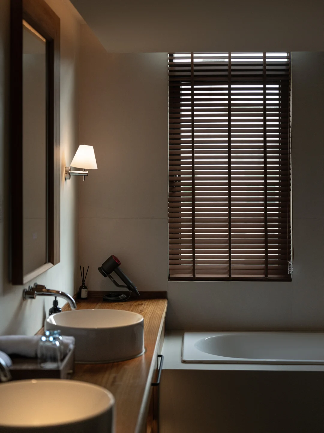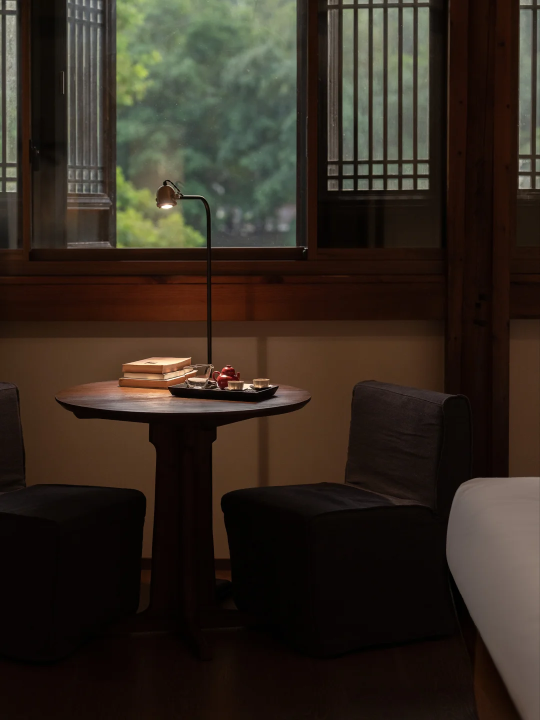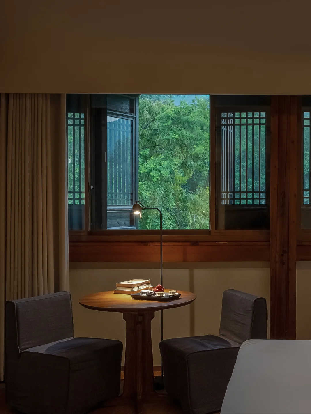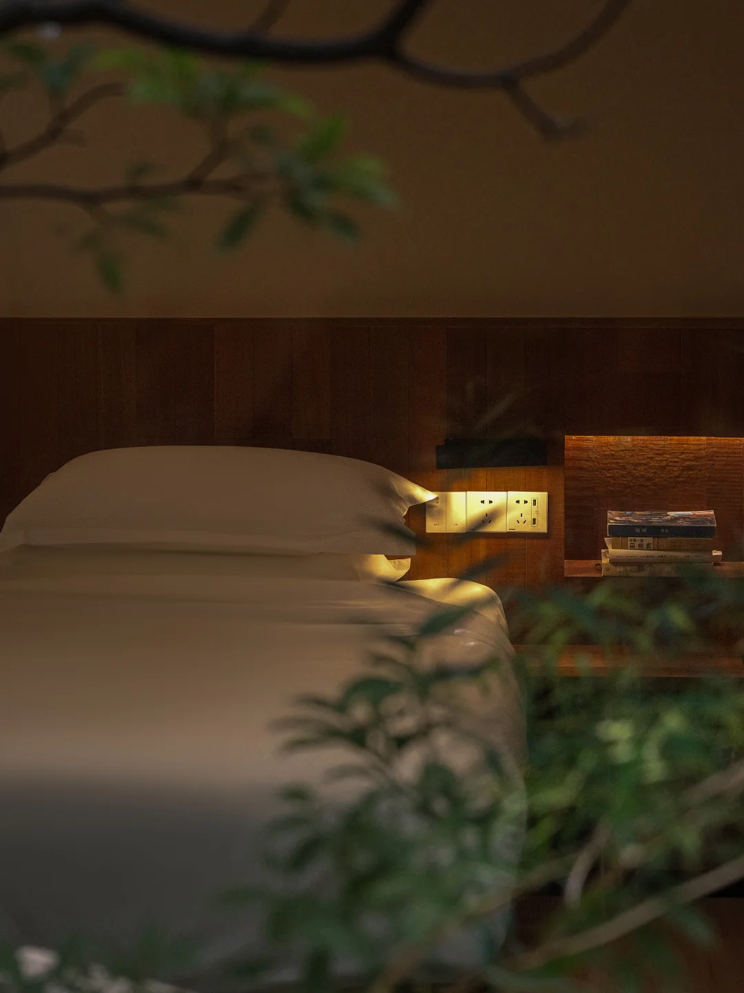 十余间客房间间与外界景观呼应,或满湖碧波,或青瓦庭院