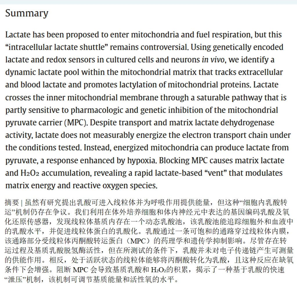 研究者用基因编码的荧光探针,活生生地看到了线粒体内部的乳酸动态。当细胞外的葡萄糖或乳酸浓度一变,线粒体基质里的乳酸水平在几秒内就跟着波动。这说明线粒体内膜对乳酸相当“友好”,进出通畅。但进去之后呢?乳酸并没有像丙酮酸那样驱动电子传递链,没有为ATP生产贡献力量。它不是好燃料。那线粒体拿乳酸做什么?答案是:用它来泄压。
