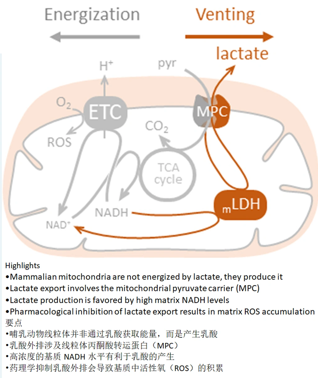 线粒体在工作时,尤其是高能状态下,会积累大量还原当量NADH。NADH太多,电子传递链就会堵车,电子漏出,与氧气反应生成活性氧——细胞里最危险的氧化炸弹。这时候,线粒体内的乳酸脱氢酶出手了。它把丙酮酸还原成乳酸,顺手把NADH氧化成NAD+。NAD+的再生,等于疏通了电子传递链的拥堵。紧接着,新生的乳酸通过线粒体丙酮酸载体MPC被快速排到线粒体外。