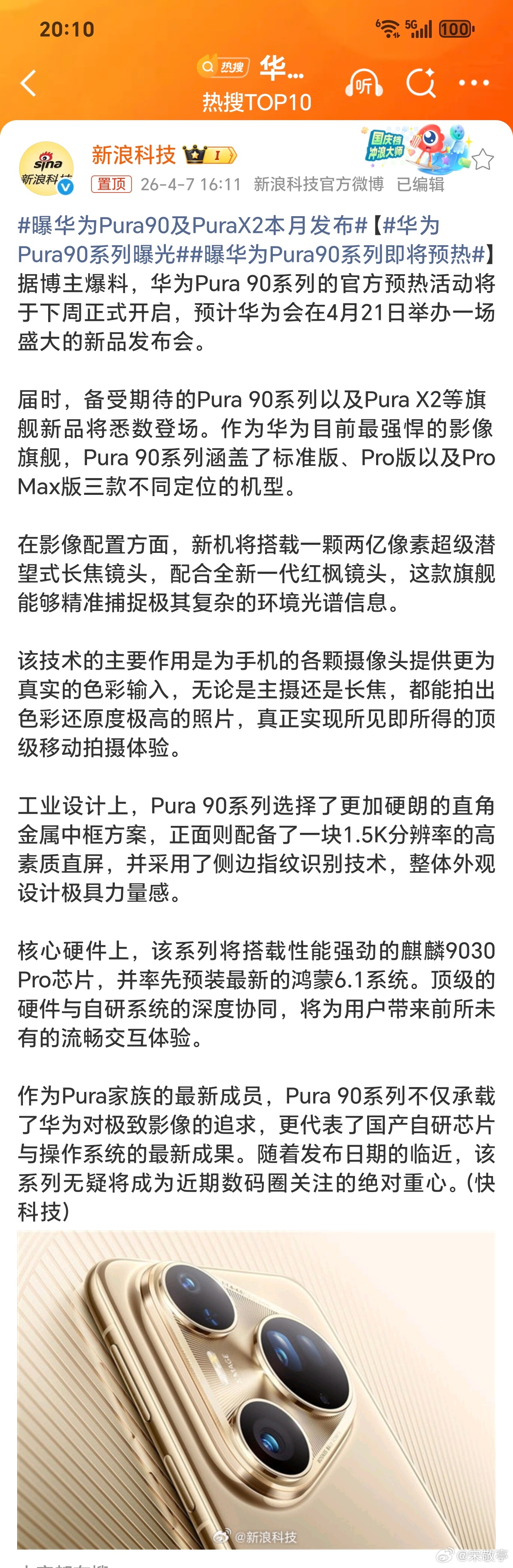 华为Pura90系列曝光Pura90系列曝光了,据传4月下旬发布,这次备货比起上代也会增加很多,大家期待吗?