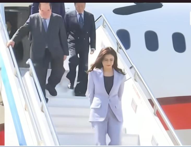 郑下飞机时有一个左手插兜和双手背后的瞬间小动作,难掩开心、激动、紧张的心情。