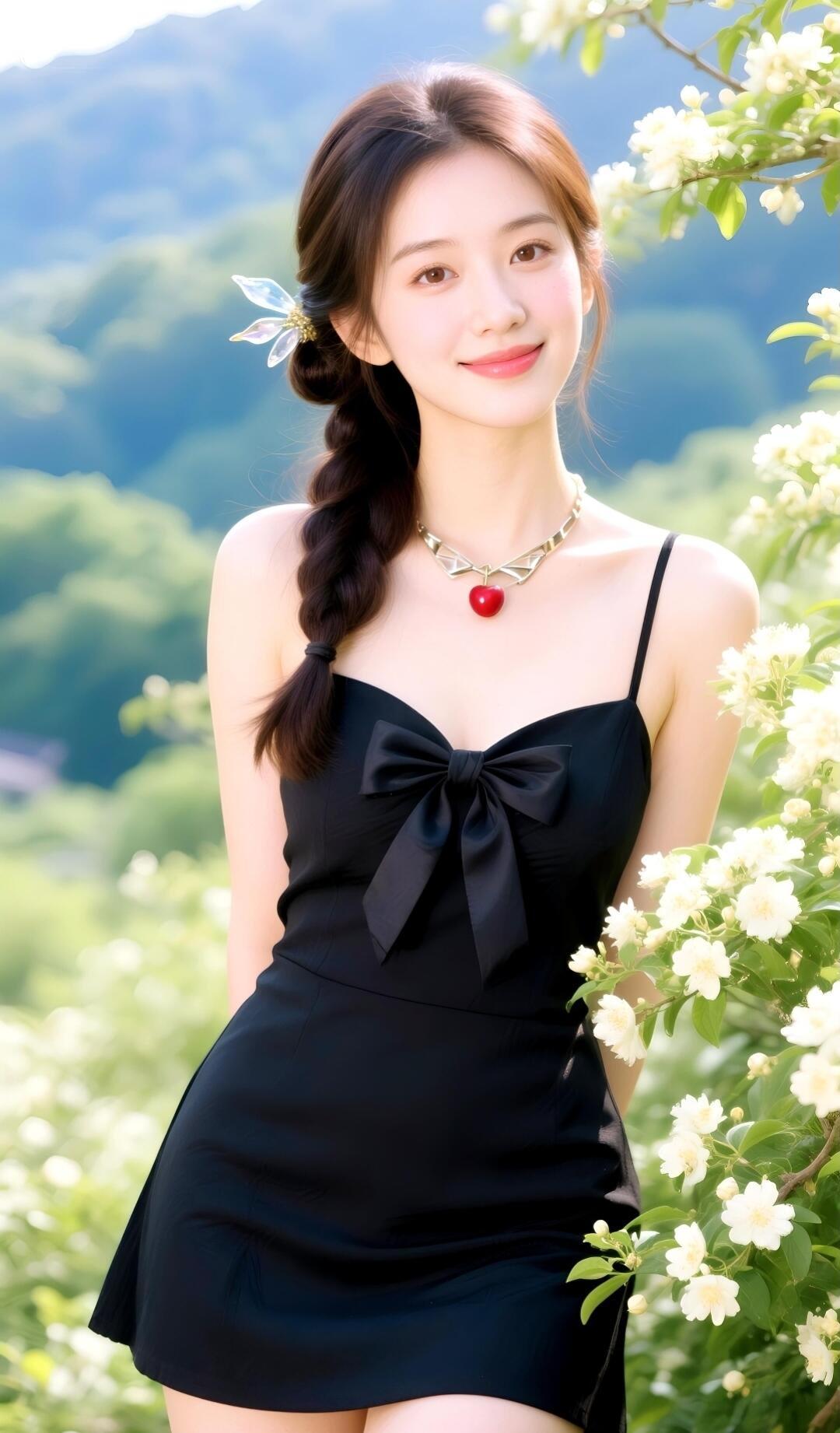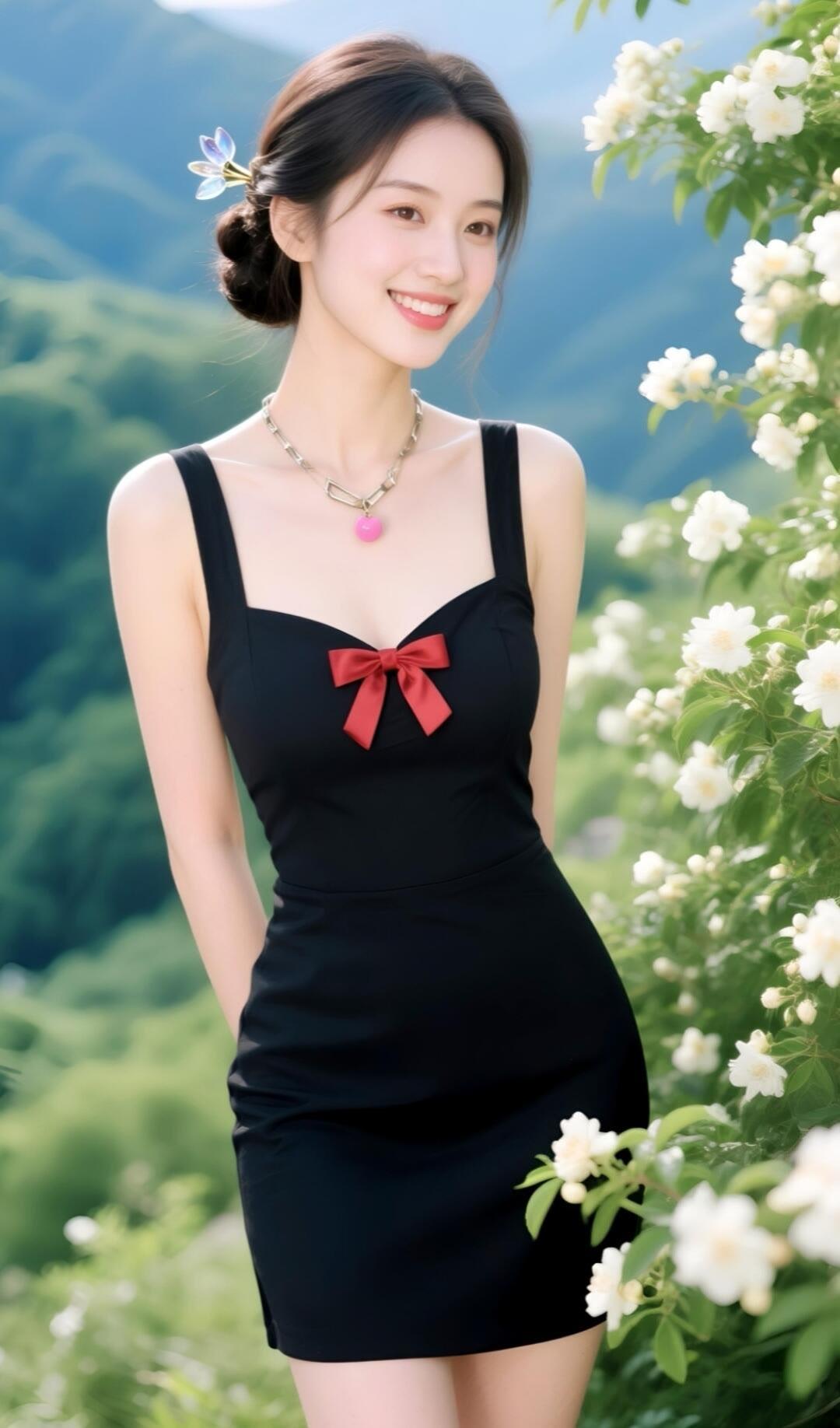 夏日清新穿搭,黑色连衣裙搭配蝴蝶结,甜美又优雅!🌸💖