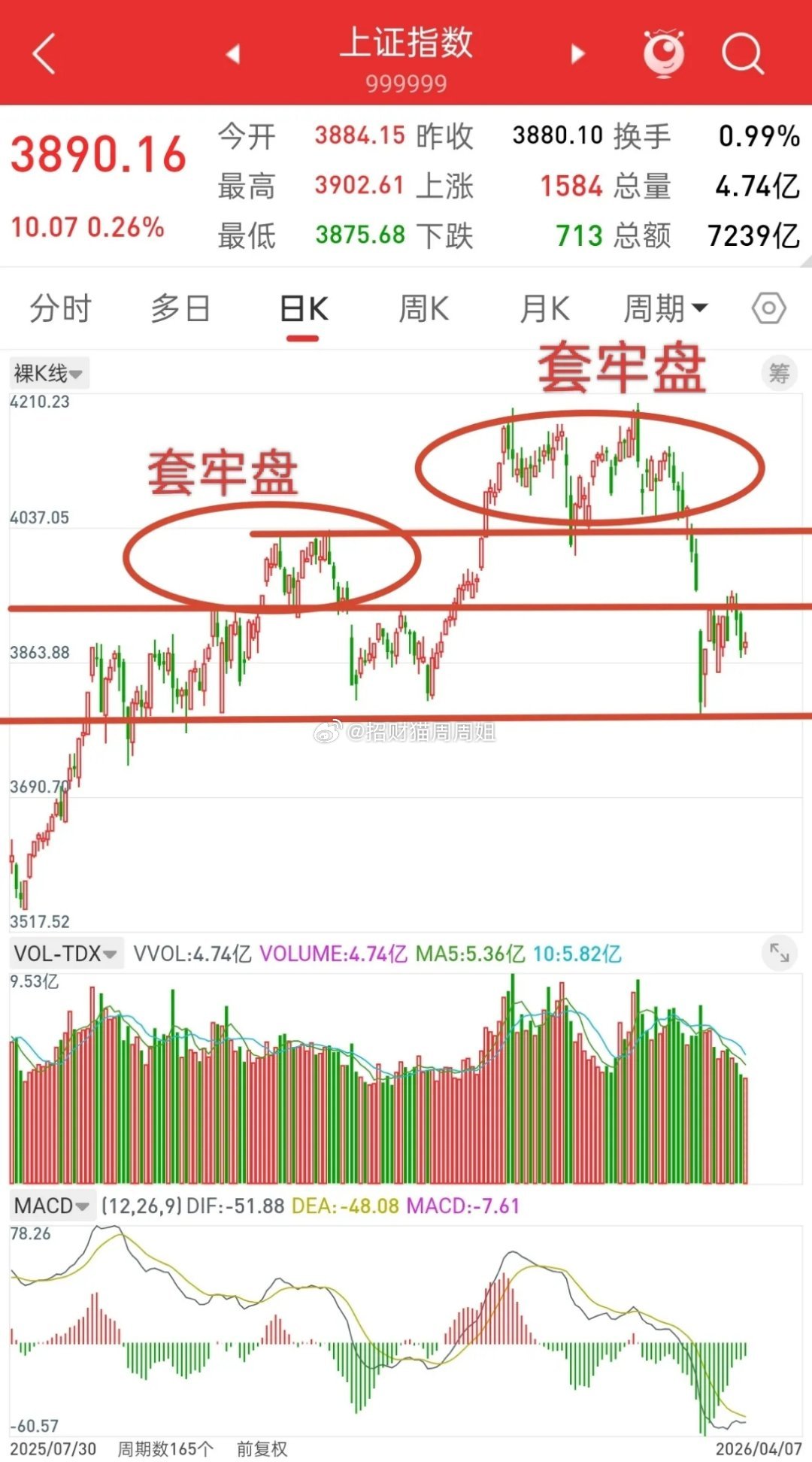 大盘如果往大的区间来看,3780-3936这区间,是目前大盘运行箱体,跟去年11.24-12.16号运行区间一样,只要行情在这个区间里,大盘都没有系统性风险。