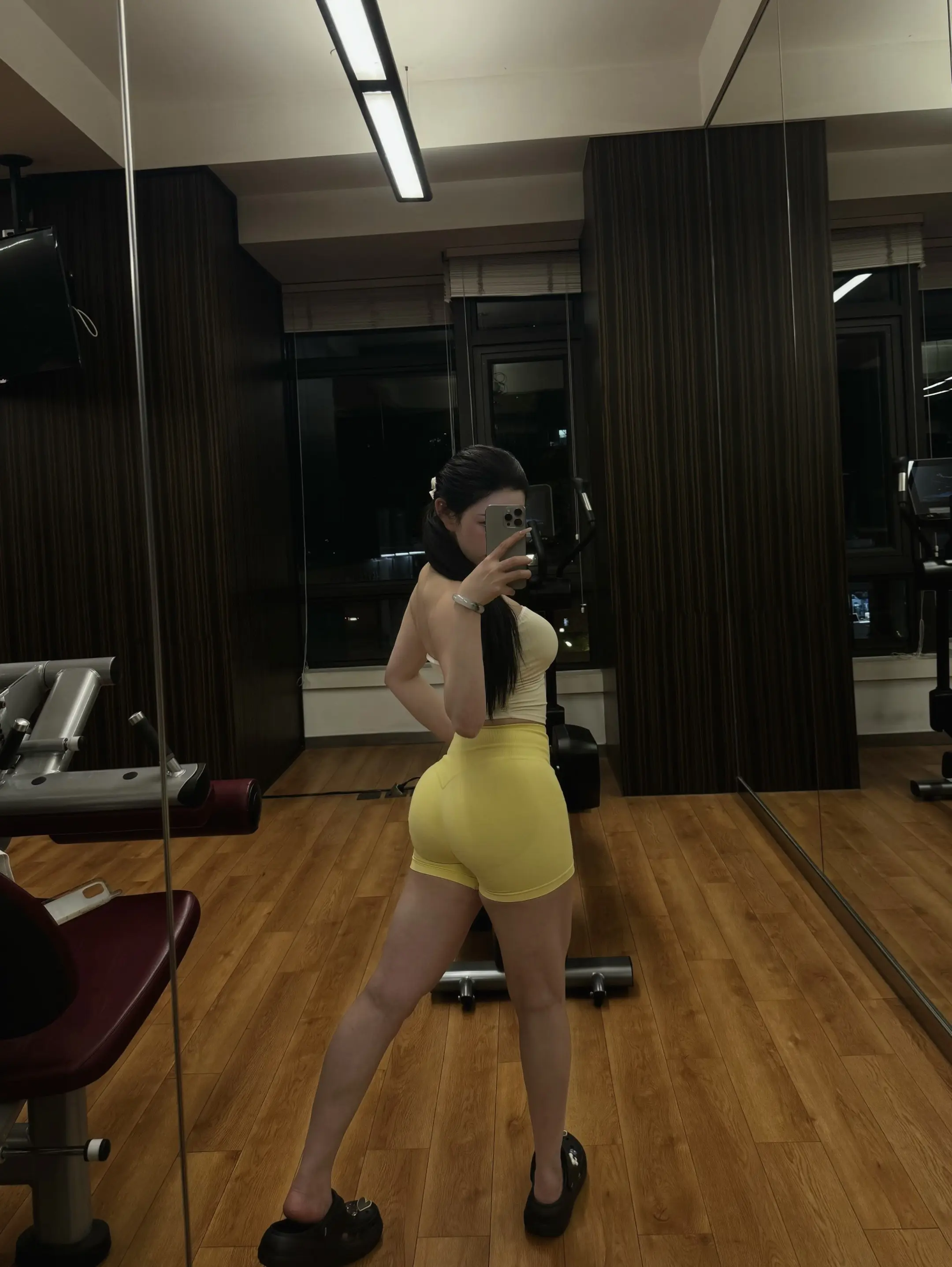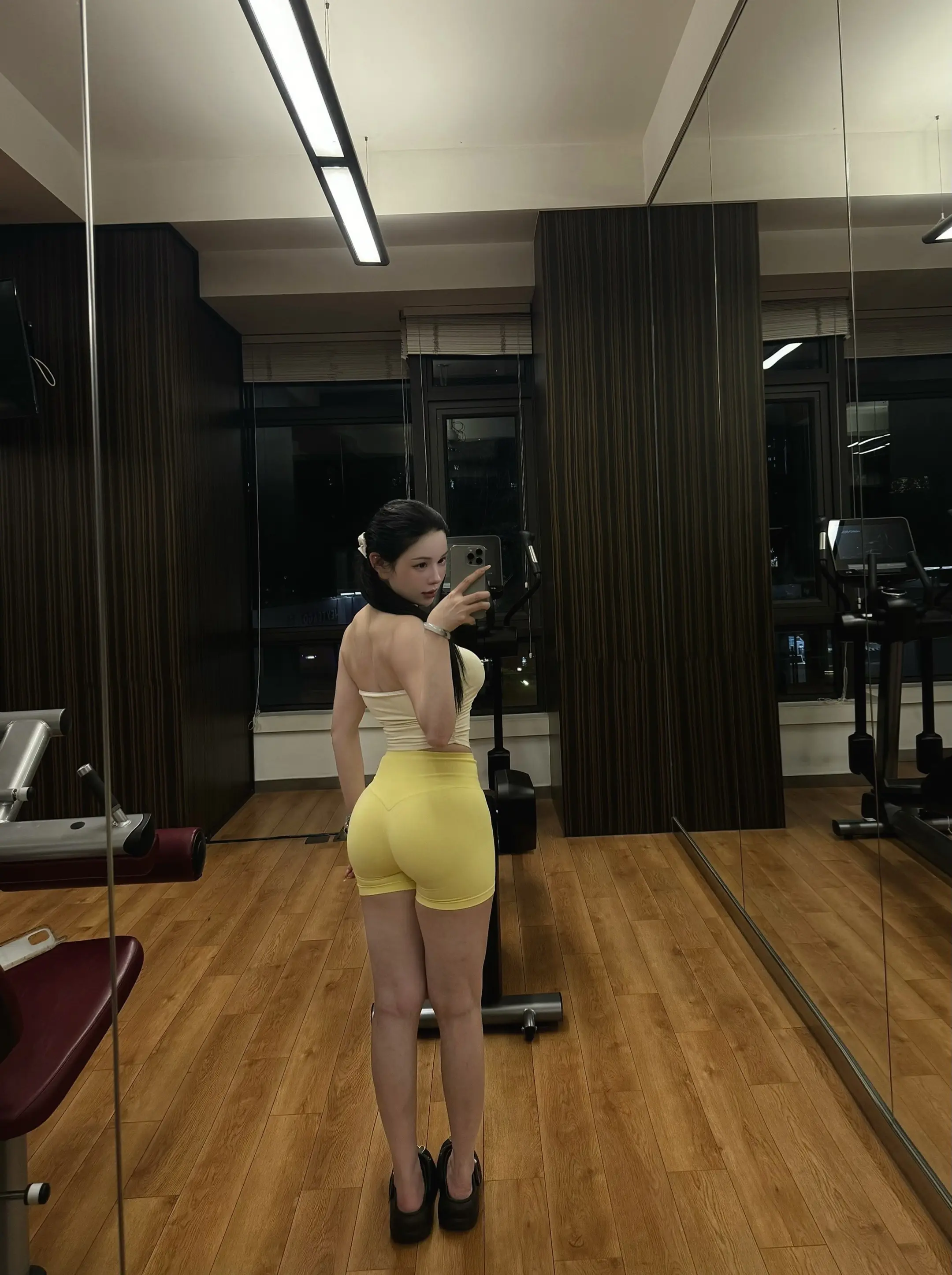 去健身房打卡,穿搭很重要!我这身粉紫色背心配黑色紧身裤,元气感直接拉满,运动起来
