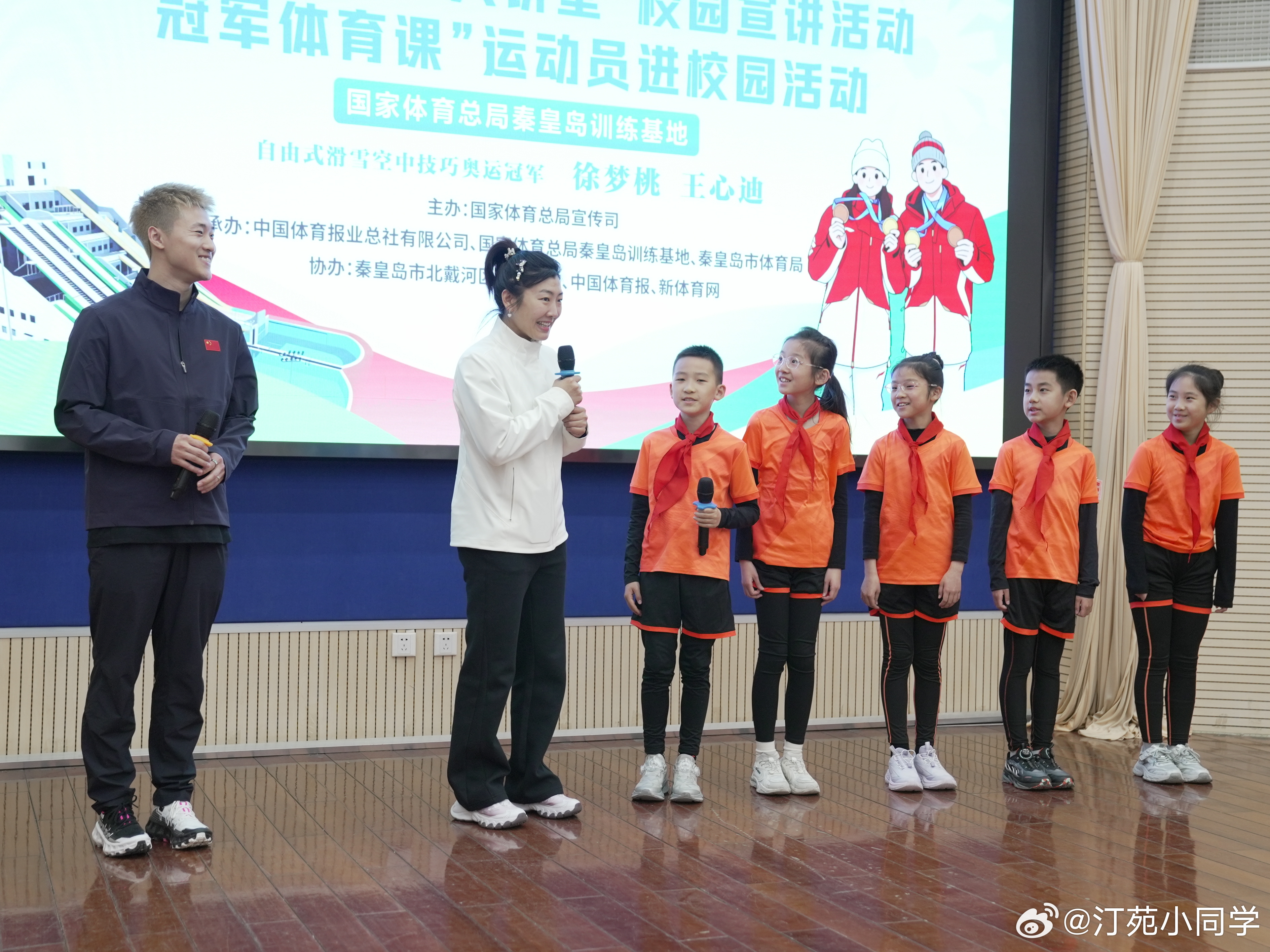 荣耀冰雪中华体育精神大讲堂4月7日,米兰冬奥会自由式滑雪空中技巧个人冠军徐梦桃、王心迪,回到中国自由式滑雪空中技巧队夏季水池训练的“大本营”——秦皇岛训练基地,在“中华体育精神大讲堂”环节,给秦皇岛市北戴河区实验小学的同学们分享奋斗故事,并化身“特派体育老师”,上了一堂充满欢乐、干货满满的“冠军体育课”。