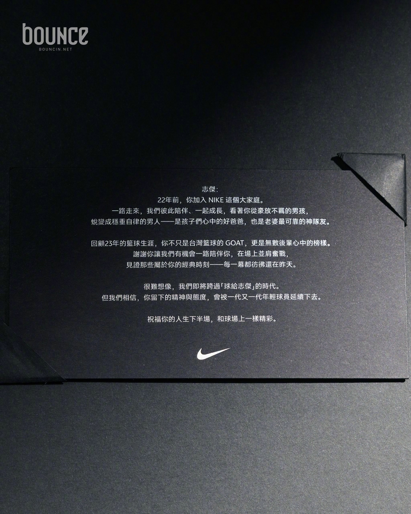 Nike为林志杰特别打造专属退役礼盒,作为这段横跨二十余年伙伴关系的深刻纪念。主题以「All the Best. All the Beast.」为核心设计,也契合了他的外号野兽。