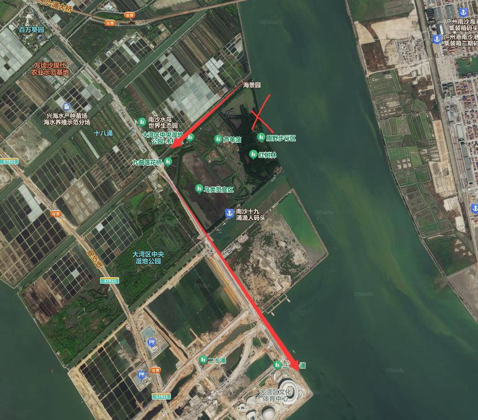 不过这个山海骑行线也会遇到阻碍,那就是南沙湿地那段,目前南沙湿地的那段属于湿地公园范围,是需要买门票才能进入的。个人预计到十八涌之后,骑行道应该是要折回到灵新大道,然后走灵新大道到大湾区文体中心了。
