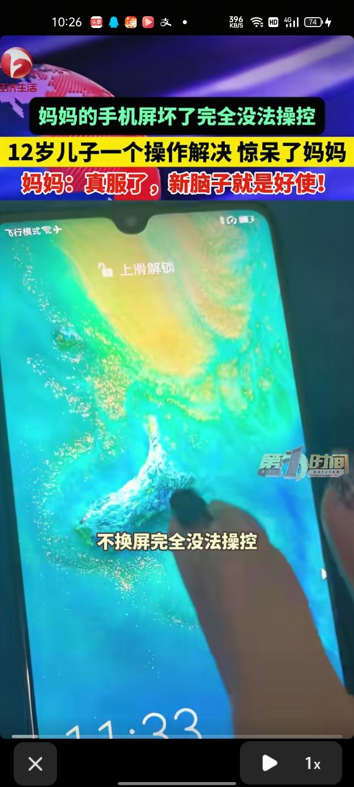 4月4日,江苏南京。孩子妈妈发布视频展示儿子的骚操作,自己手机屏坏了完全没法操控