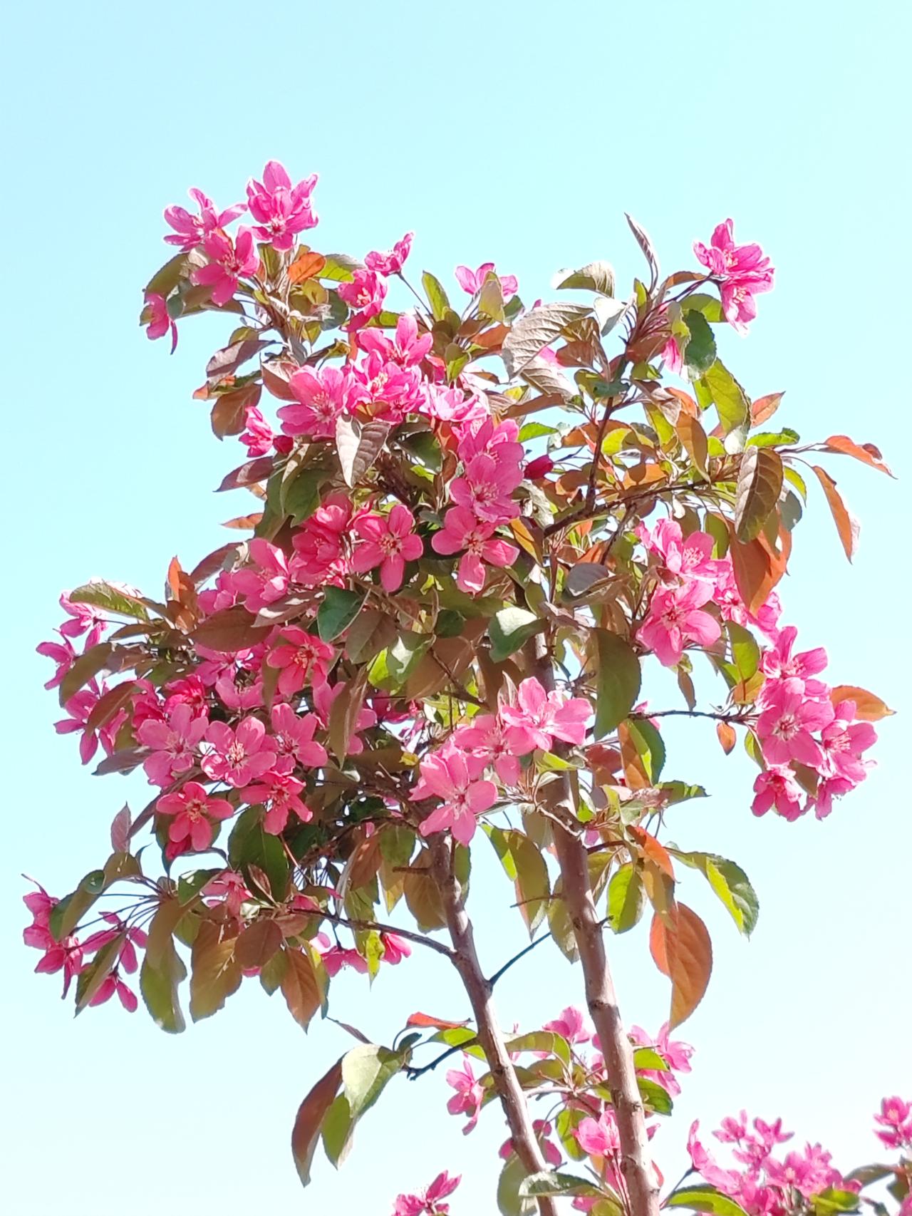 海棠花真的太让人着迷了!我们这的春天,到处都能看到海棠花的身影,小区楼下、公园、马路边,它们毫不含蓄地展现着自己的魅力。 一阵风吹过,海棠花瓣飘落,仿佛下了一场浪漫的花雨,空气中弥漫着淡淡的花香和青草味,沁人心脾。 这么美的海棠花,当然要拍照记录啦!可以提篮看花,人景对半构图,拍出文艺田园风;也能侧坐远眺,用长焦拍出花海意境;还能虚实结合,营造氛围感。海棠花盛开的日子,多出门走走,感受这份美好,留下美美的照片,简直太惬意了。