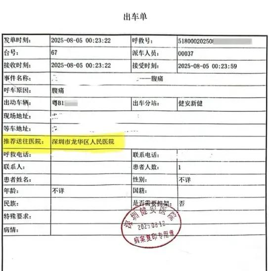 看到这个新闻,我血压都上来了!2025年8月,深圳一位阿姨腹痛打120,调度中心明明指令送2.8公里外的三甲医院,结果救护车一拐弯,把人拉到了3.8公里外自家开的民营医院!