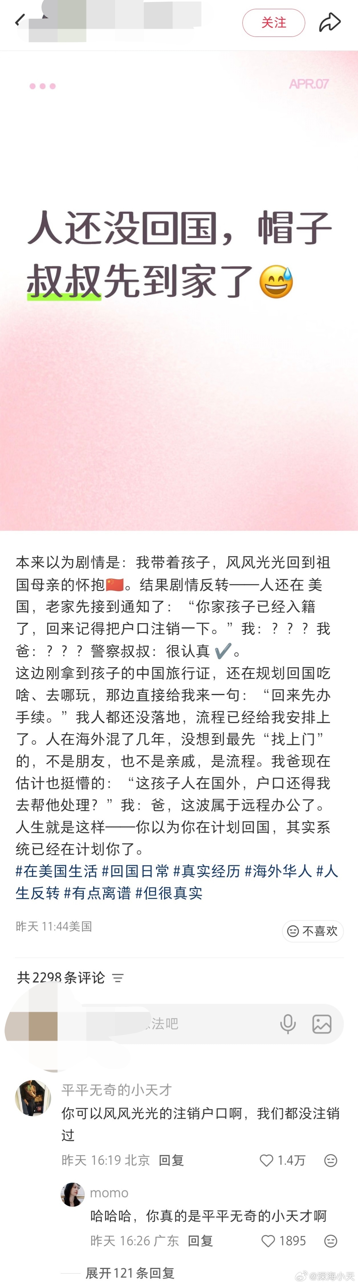 这位在美国海军服役的博主,竟然想着带着他孩子“风风光光的回国”,都不是中国人了,