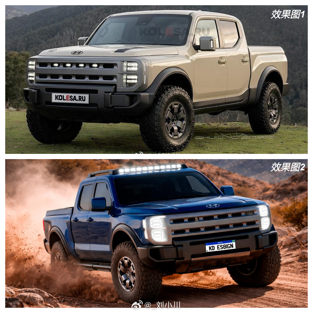 全新现代Boulder皮卡版效果图 现代汽车将针对美国市场推出中型皮卡,刚发布的全新越野概念车Boulder(图1至图3)预示了新设计语言,图4和图5为两个不同版本的效果图对比,大家觉得哪个更帅
