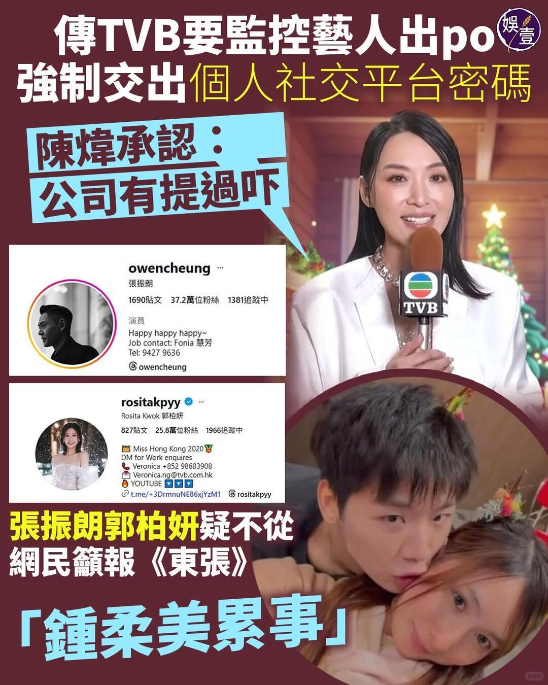 TVB回应被指强收艺人社交帐号港媒曝张振朗反对上交社交账号遭雪藏艺人辛苦经营的社