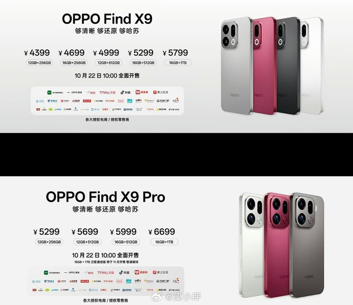 OPPO Find X9涨价200-50012+256G,原4399,现459916+256G,原4699,现499912+512G,原4999,现529916+512G,原5299,现559916+1T,原5799,现6299