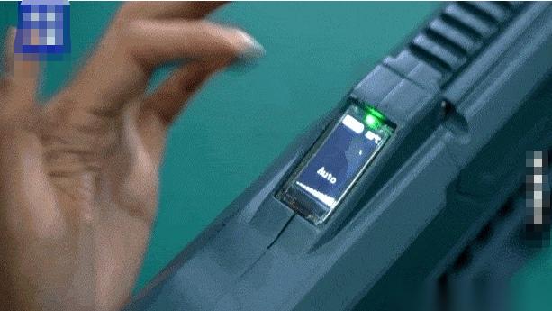 枪身上还嵌了块电子屏,实时显示电量、弹量、当前模式。打枪打得跟操作智能手机似的,能直观地看到自己在干嘛。