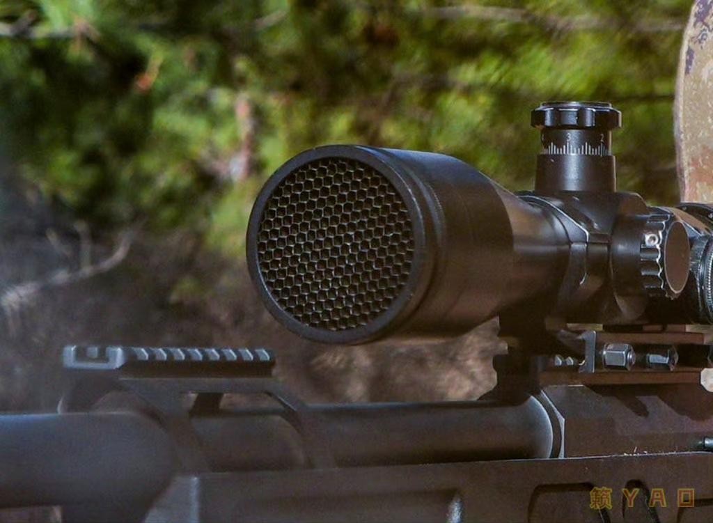 偶见解放军远距离狙击枪瞄准镜加装蜂窝状消光罩的。
