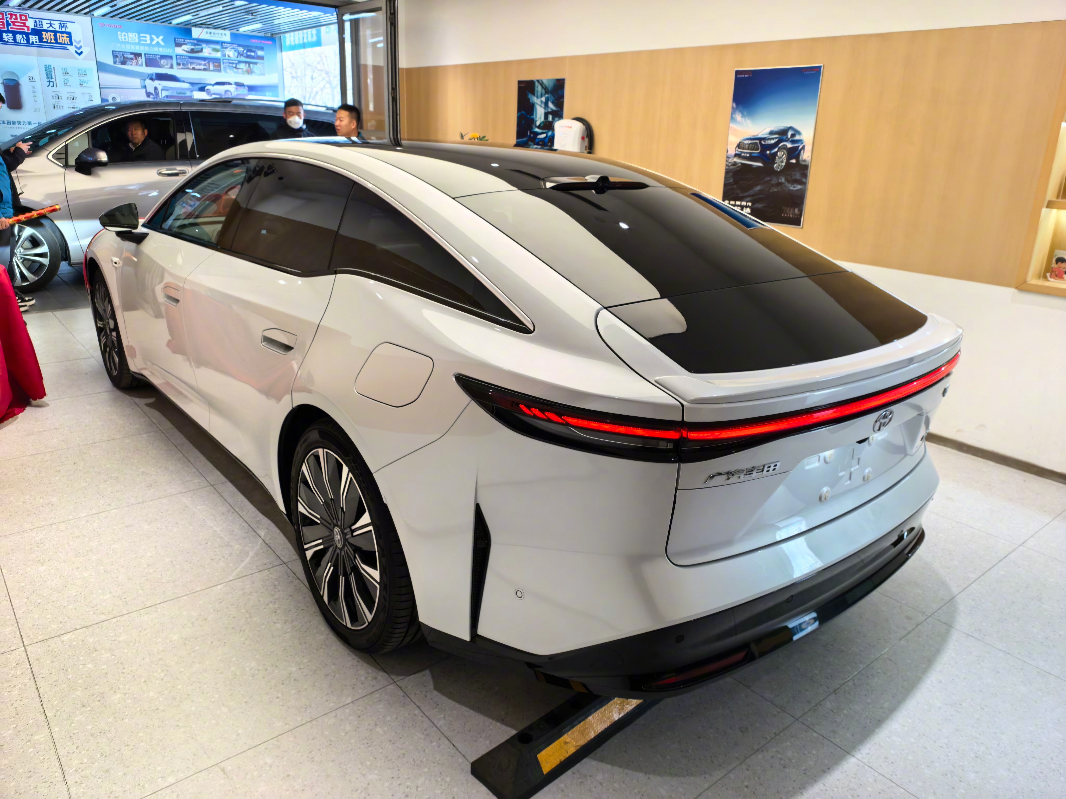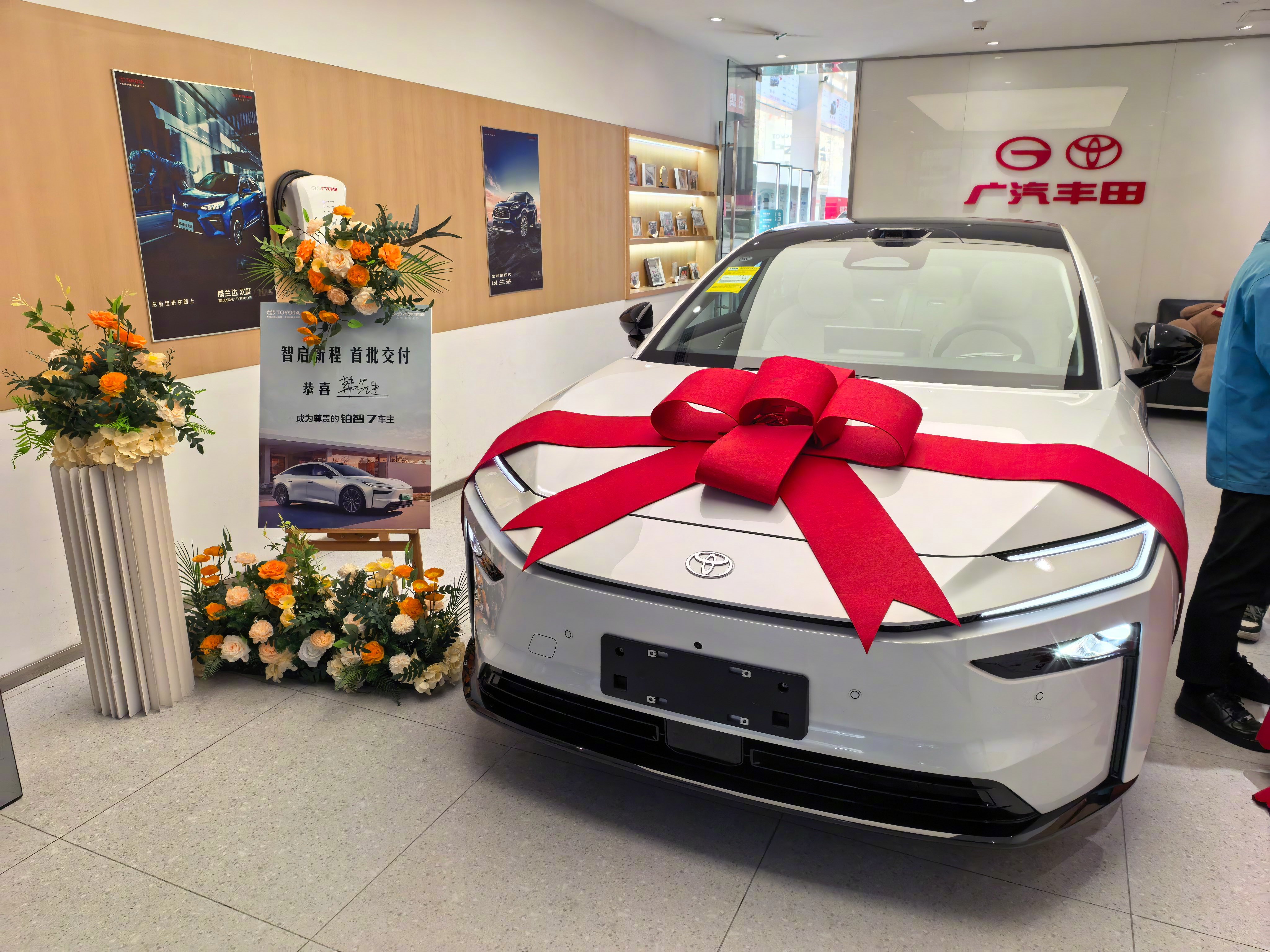 提了广汽丰田铂智7,加5000选了双腔空悬、大电池88.13度电池版本、白外白灰内、没选21轮儿、因为这20轮儿也挺好看。