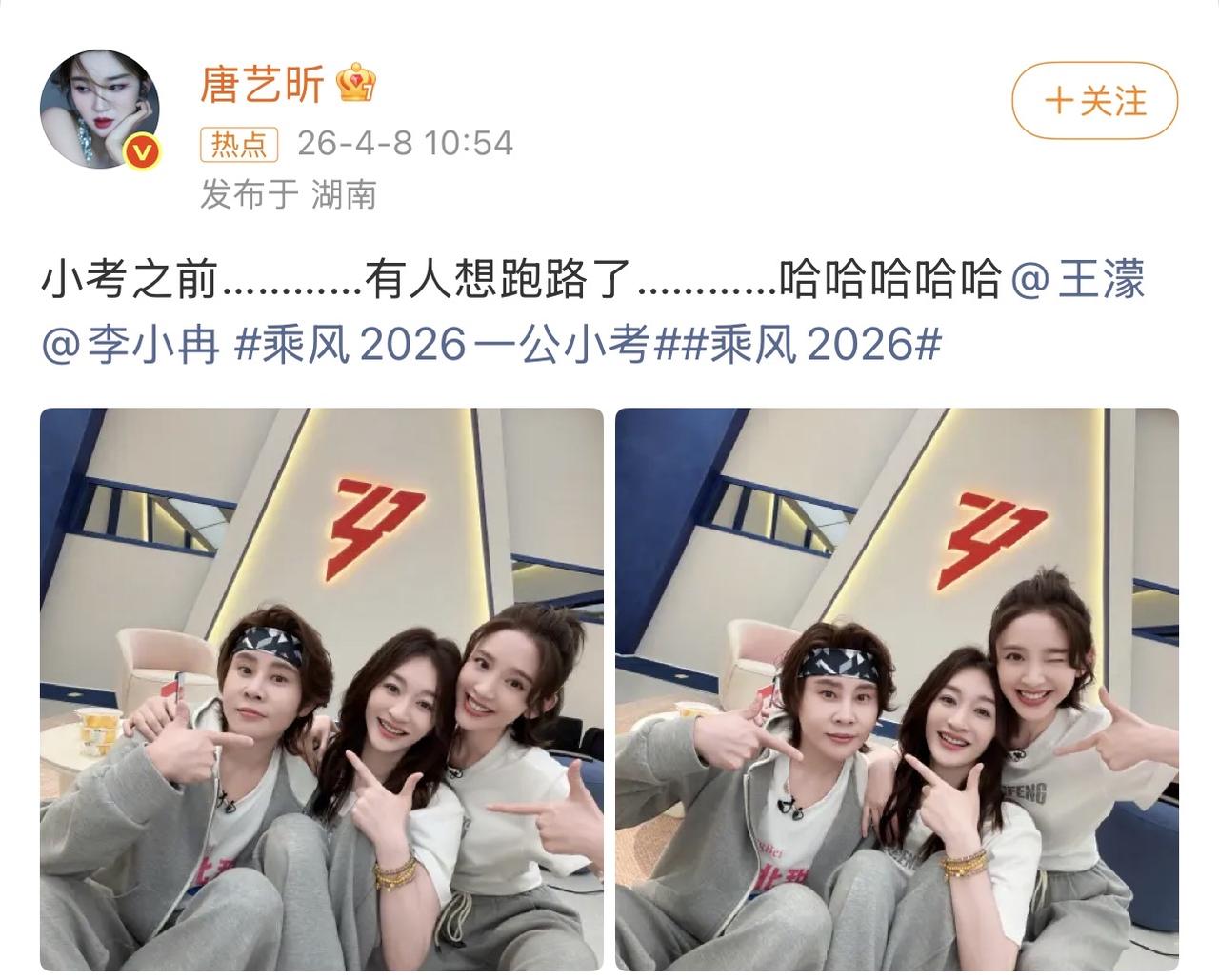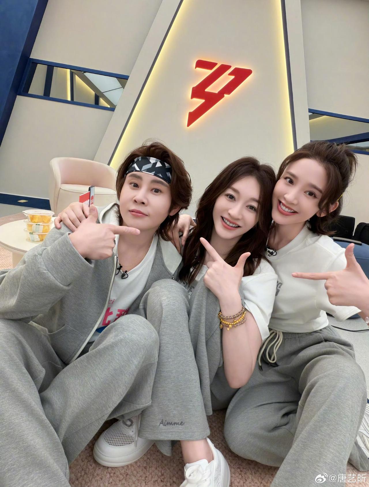 唐艺昕:哈哈哈哈,姐姐你这是“重量级”的实力!别怕别怕,你看我们这表情管理都快崩溃了,全靠这搞怪照片续命呢。来来来,咱们三个再拍一张,把这“想跑路”的惊恐表情定格一下,这叫什么?这叫赛前减压!