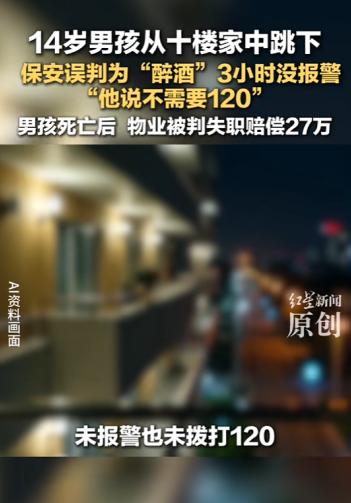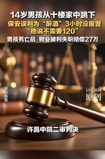 2024年11月河南许昌,一男孩留下遗书后跳楼,小区保安发现后以为他是“醉酒”,所以没有报警也没有拨打120,而是将其安置在4楼离开,当男孩父母发现他时,送往医院却已经没救了,最终法院的判决却出乎意料