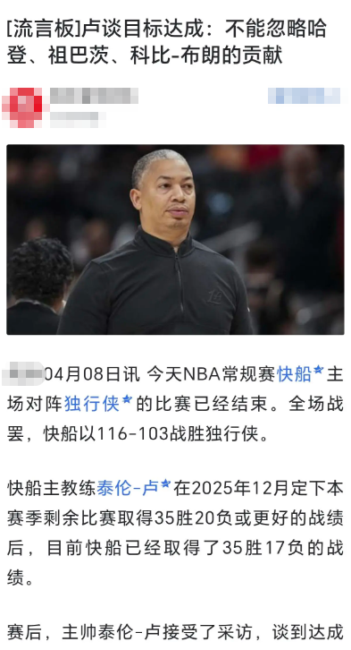 有一说一这35胜,登哥的功劳很大,哈登在被快船管理层交易走之前带队打出过一波18-4的连胜潮,给快船打下好的基础,在大家不相信冷嘲热讽下还是达成目标,感谢登哥,鲈鱼今天发布会上特别还提到这个事。
