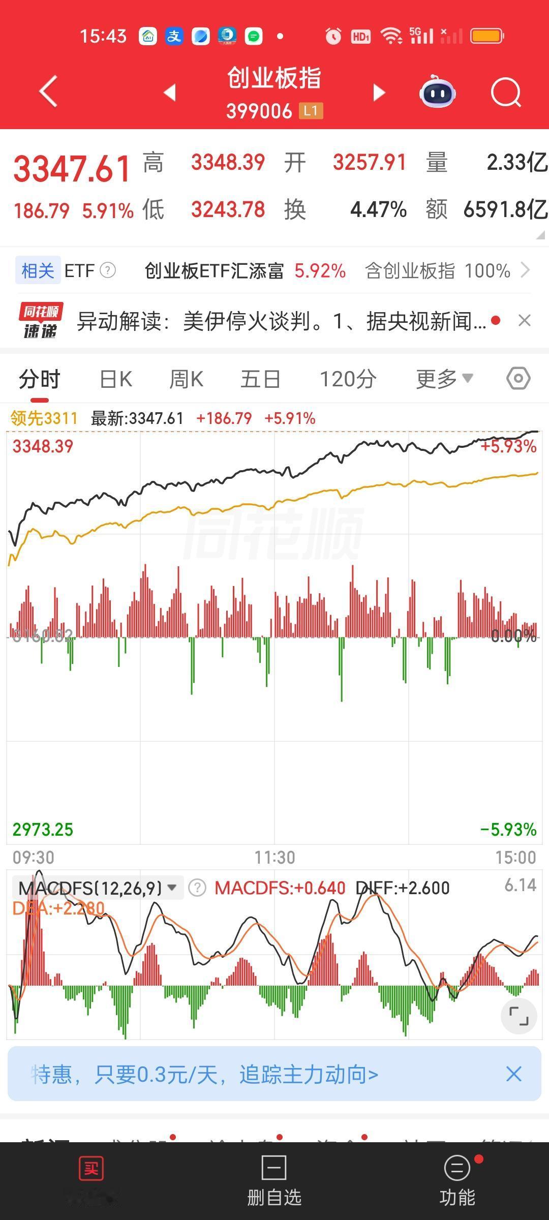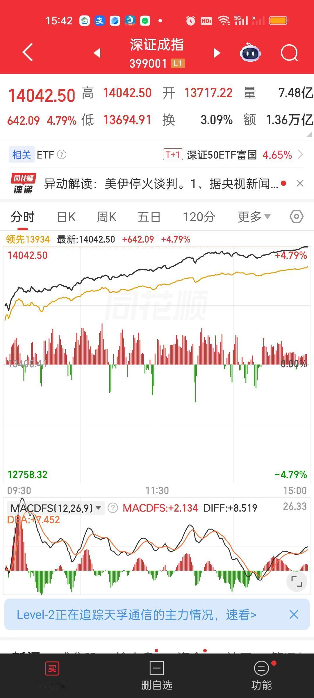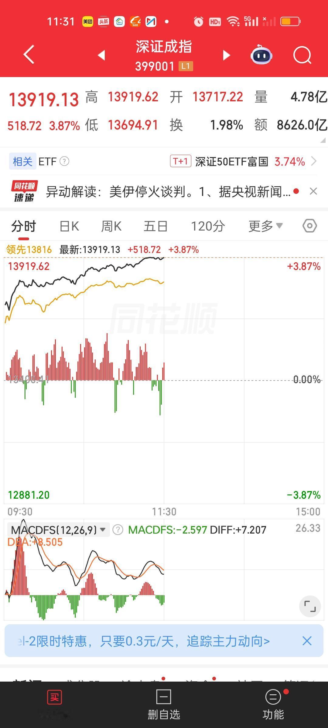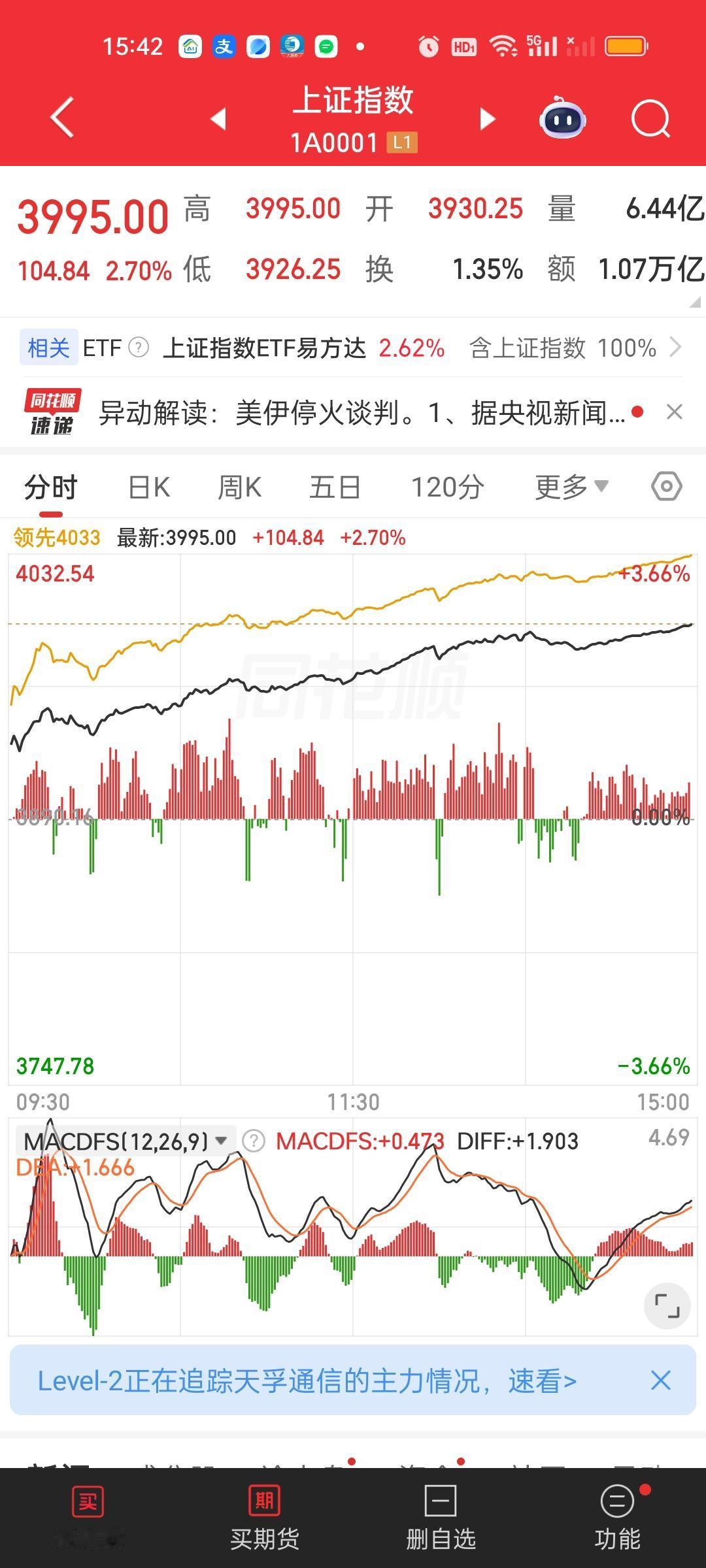 收盘了,今天赚钱效应非常好,大盘一整天都在持续强势表现。可以说是整个2026年赚钱最好的一天。上证指数大涨超100点。深指涨了642点。许多板块ETF的涨幅都在6%以上。更别提板块里面的个股了。但前面坑挖的比较深,指望一天就填平也不现实。前面我就说过三月负责挖坑,四月负责填坑,四月行情不会差。 上午收盘成交量放量4746亿,大盘资金净流入672亿,有超过5000家个股上涨,涨跌停比90:10,全天收盘成交量放量8271亿,大盘资金净流入1001亿,有5174家上涨,涨跌停比135:12。这说明下午实际上放量8271-4746=3525亿,大盘资金净流入1001-672=329亿。涨停家数也增加了45家。 主力资金净流入超10亿的个股比上午增加了4家,中油资本和亨通光电净流出资金超10亿。