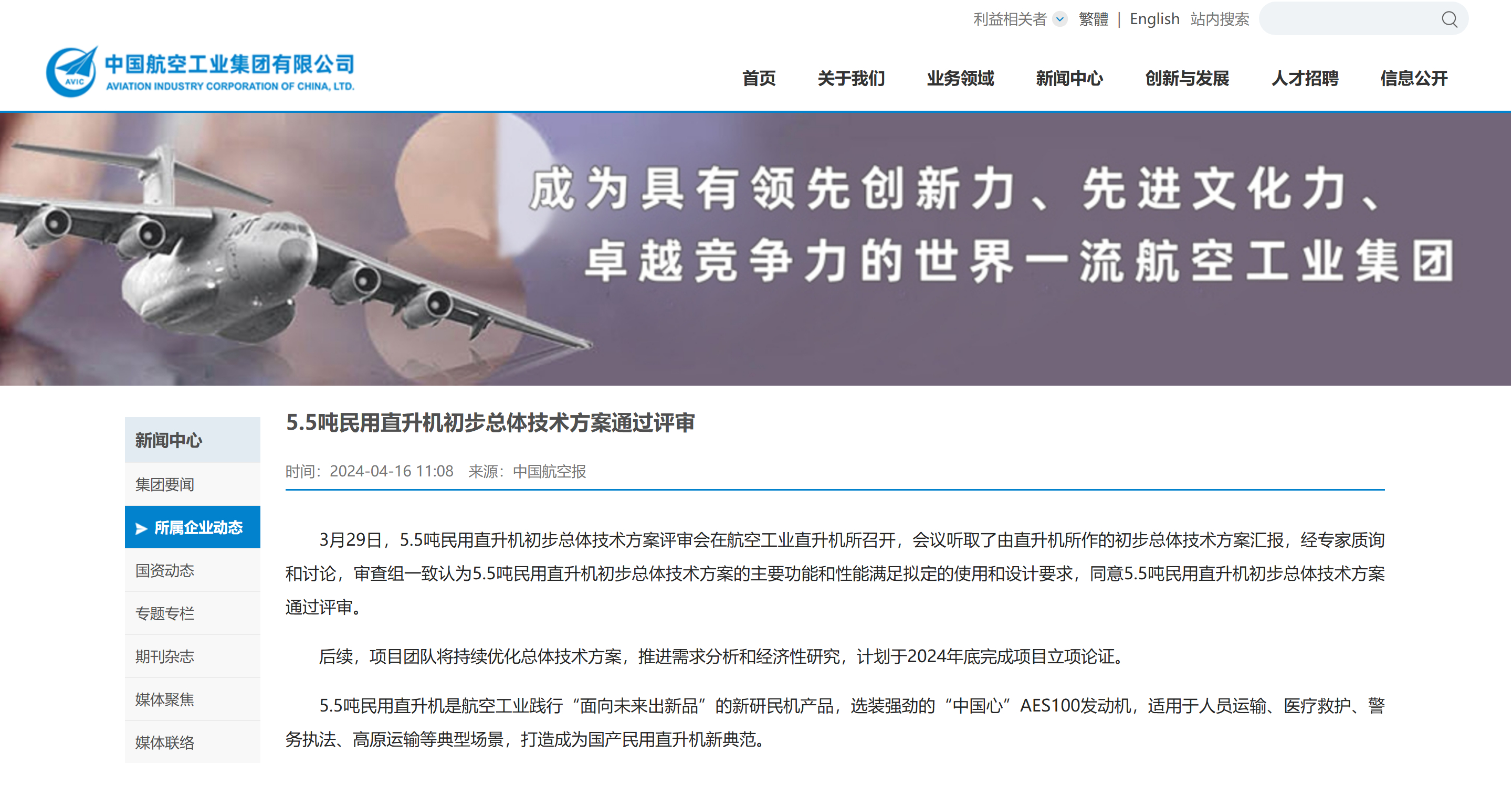 作为 “第一型具有国际竞争力和完全自主知识产权的1000kW级先进民用涡轴发动机”,AES100相比玉龙有着明显的代际领先 (玉龙是典型的三代涡轴),其发展型号能被AECC列入 “军用航空动力” 栏目,说明该型机或许已经有了军机配装对象