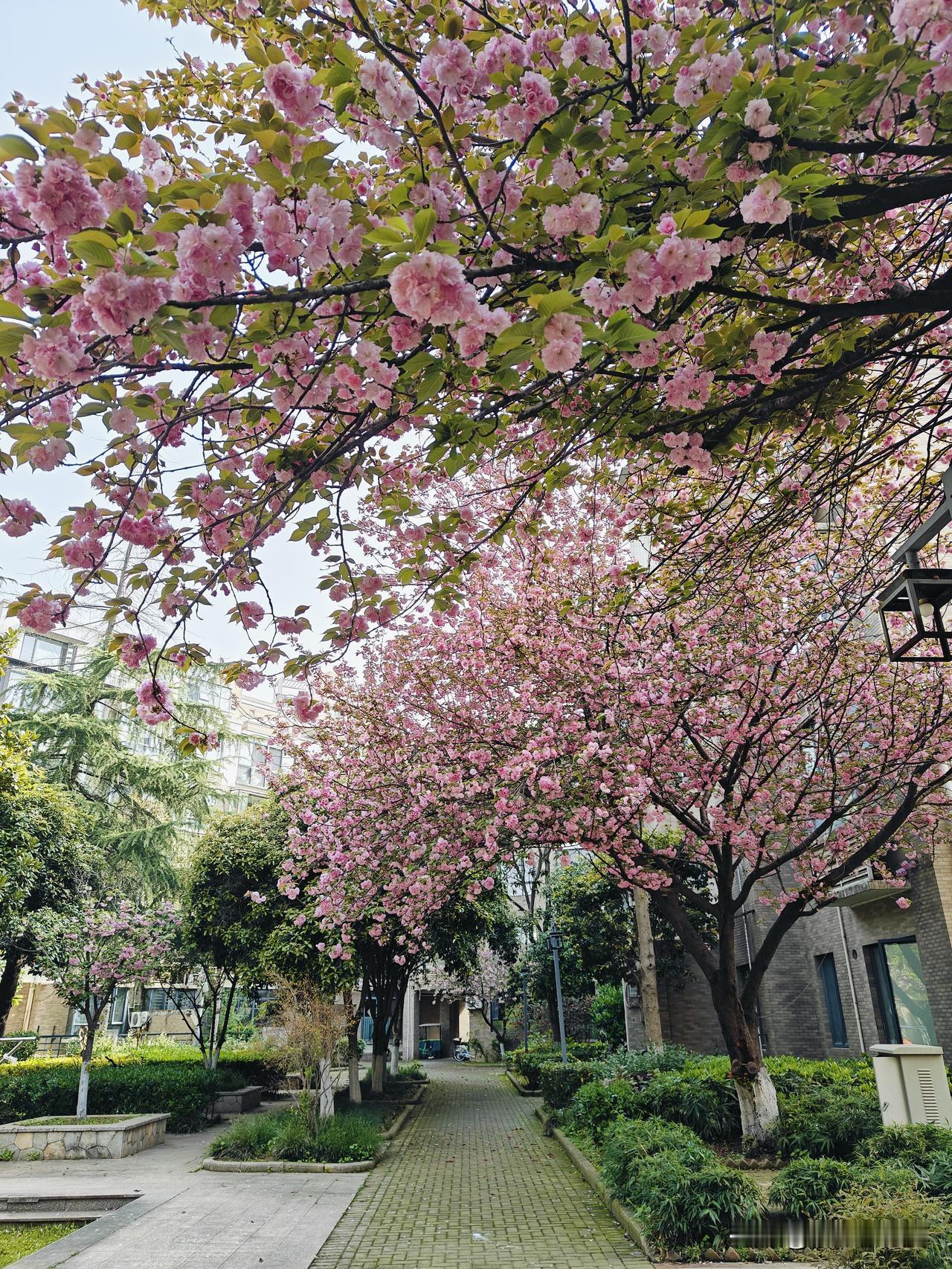 我家小区的樱花开得热热闹闹,粉白一片,风一吹花瓣簌簌往下落,下楼散个步就能沉浸式赏春,安安静静的,比景区舒服多了。