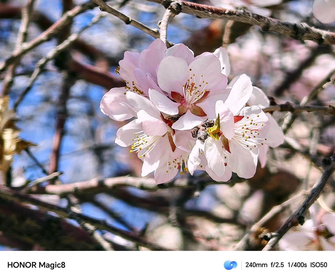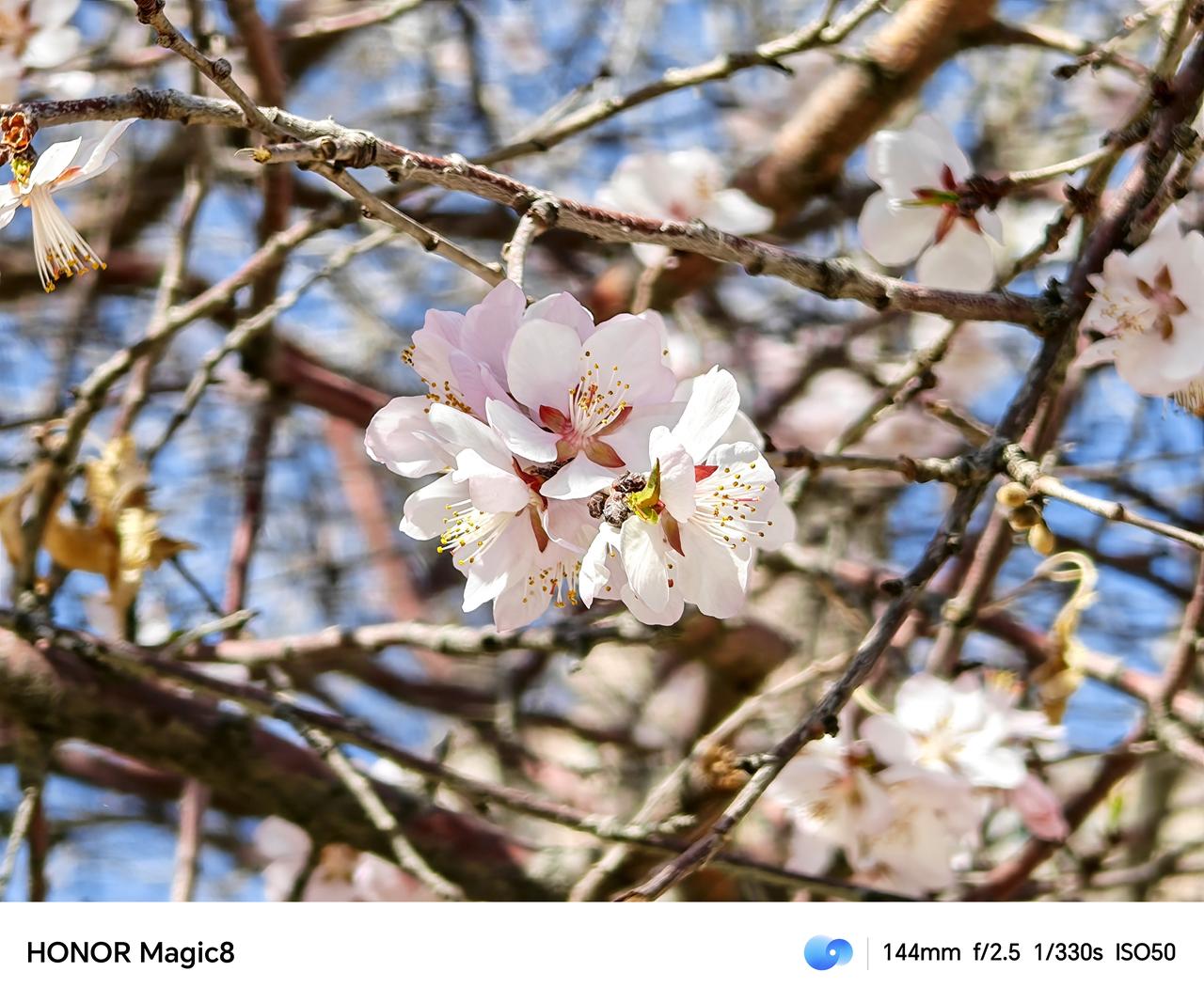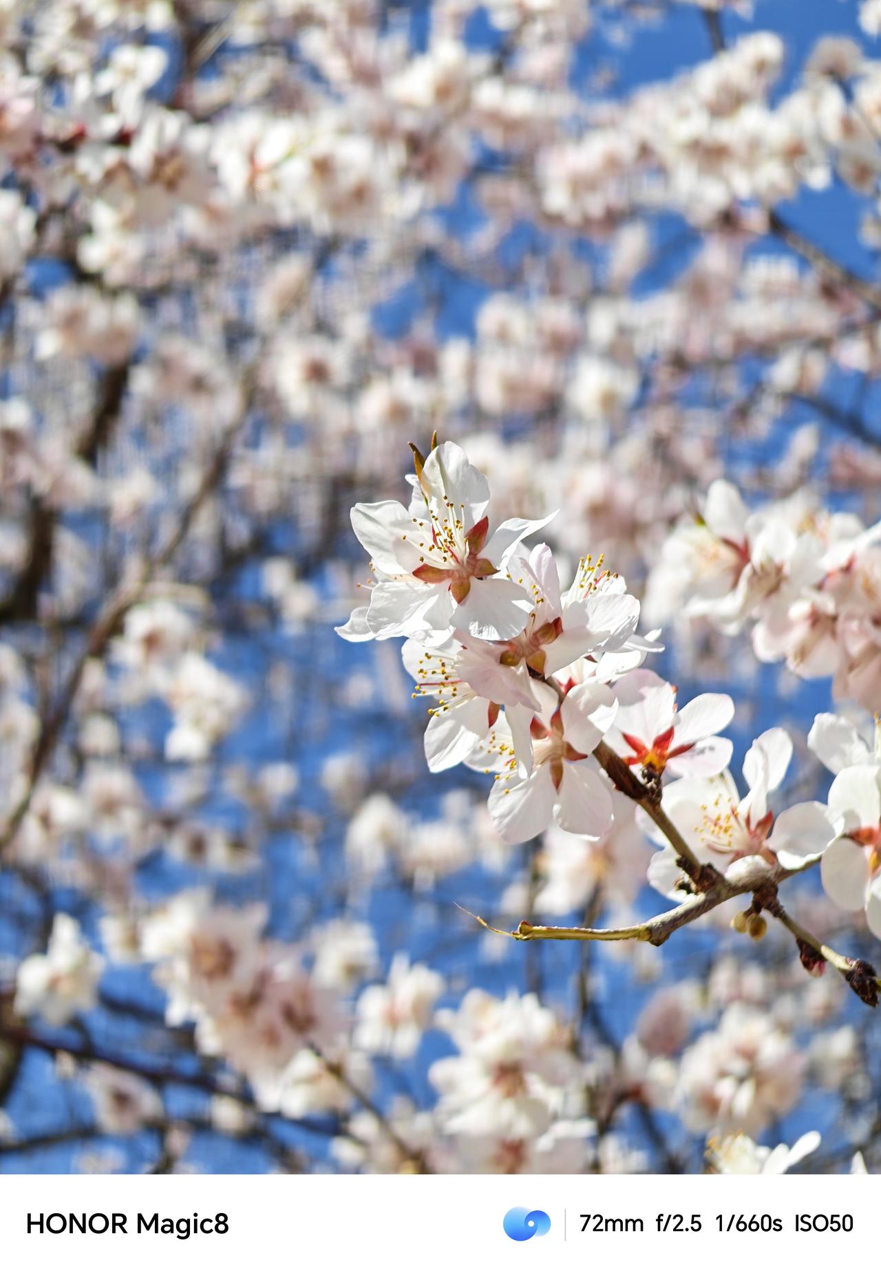 升级了150系统后的荣耀Magic8拍照真的太顶了,中午出来随手拍的路边树上的花,直接把朋友惊艳到了!朋友拿我手机一看:“你这什么手机?拍出来比我苹果好看太多!