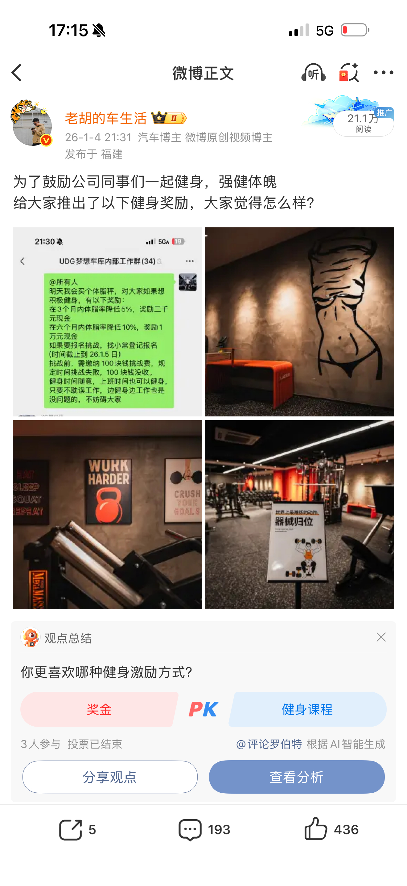 上次推出的减肥奖明天就要公布中奖的员工了看看有哪几位同事能拿到 3000 元或者 1 万元减肥大奖以后就是全员瓜子脸,拒绝油腻